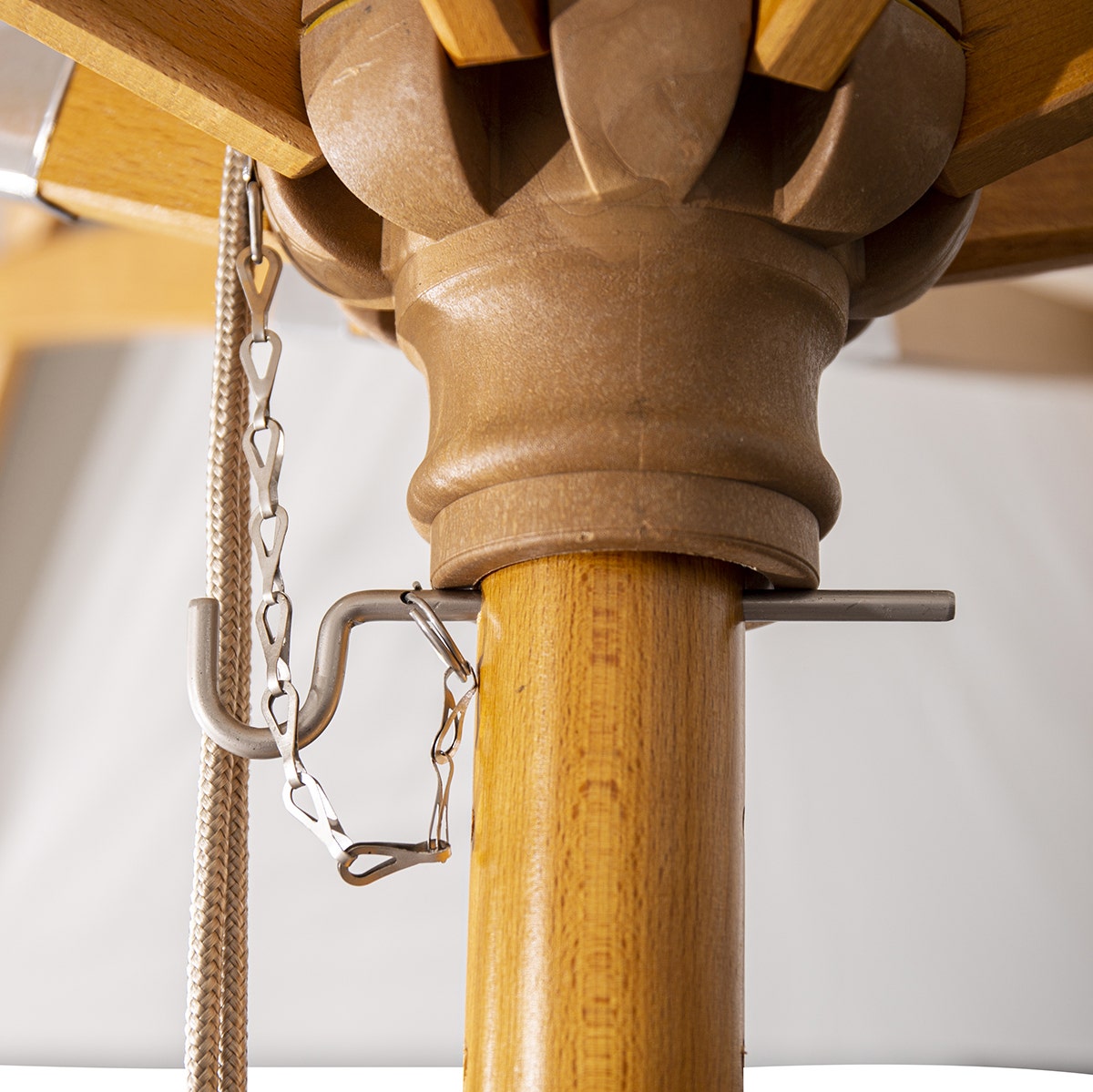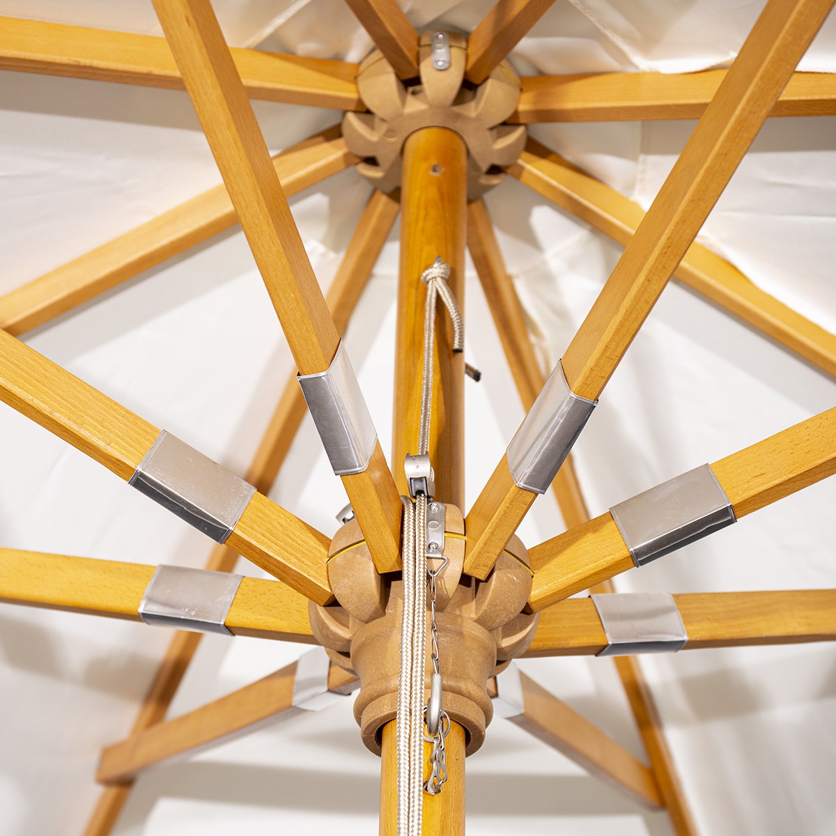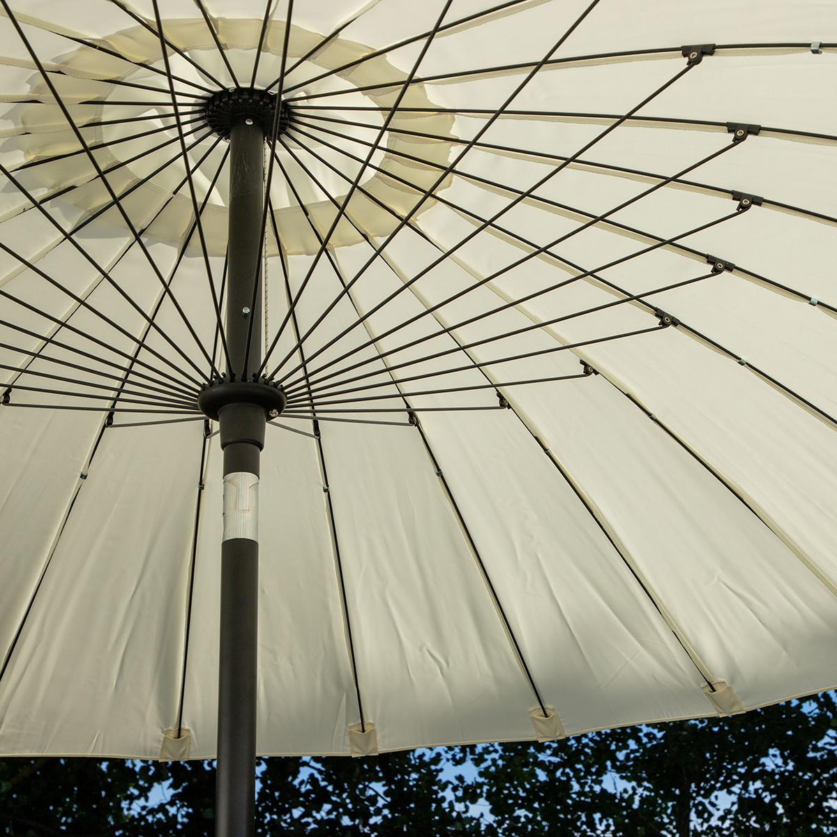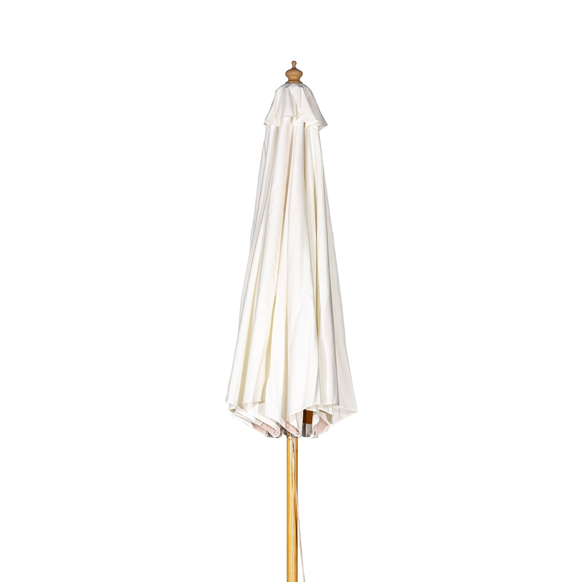 Creëer een knusse sfeer op het terras in de tuin met de Sonn parasol van Nest outdoor. Deze staande parasol heeft een klassiek design en zal in iedere tuin een goede match vormen met de andere tuinmeubels. Zowel de stok als de 8 baleinen zijn gemaakt van beukenhout en hebben een naturel houtkleur. De parasoldoek is gemaakt van polyester en heeft een witte kleur. De Sonn parasol opent door middel van een katrolsysteem en heeft een diameter van 3 meter. Hierdoor is deze grote parasol ideaal om schaduw boven de tuintafel te creëren. De natuurlijke en warme uitstraling zorgt ervoor ervoor dat een gezellige en zomerse sfeer ontstaan in de tuin. Let op: de parasol wordt zonder parasolvoet en hoes geleverd. Voordelen en tips Staande parasol met wit polyester doek Houten stok en baleinen Natuurlijke en warme uitstraling De mastdiameter is 4,8 centimeter Veel schaduw dankzij de diameter van 3 meter Bediening