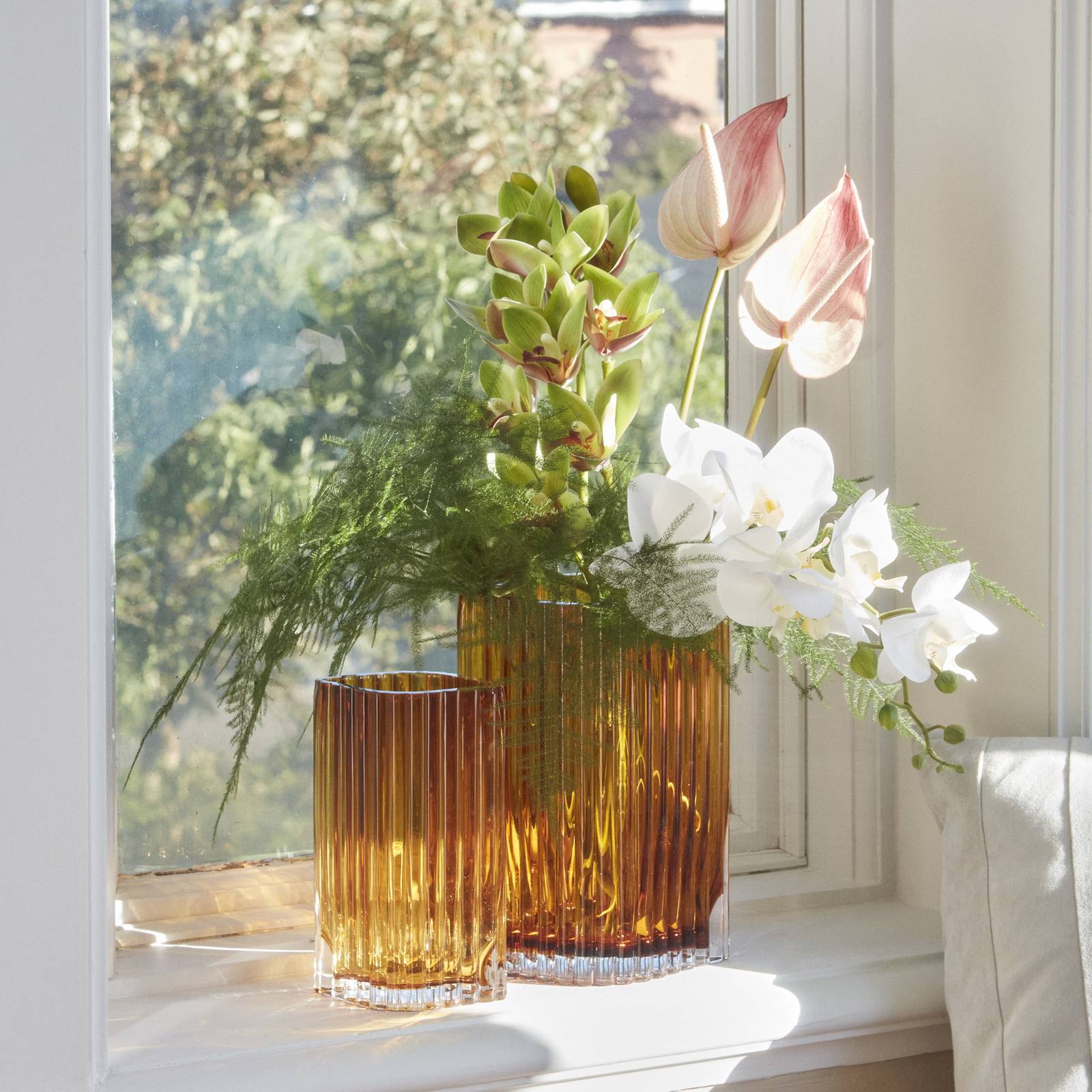 Folium vaas van mondgeblazen glas De Folium vaas is een bloeiend meesterwerk. Van bovenaf gezien lijkt deze prachtige vaas op een blad, precies wat Folium betekent en de inspiratie is voor het ontwerp. De gedurfde lijnen en fijne kantachtige bogen zijn prachtig vormgegeven in deze mondgeblazen glazen vaas - en wanneer de zon speels op het glazen oppervlak schijnt, ontstaan er betoverende reflecties van kleur en licht. product opmerkingen: Gemaakt van mondgeblazen glas - elke vaas is uniek. Kleurvariaties, verschillen in materiaaldikte en afwijkingen van de productfoto zijn daarom mogelijk. Onderhoudsinstructies: Om vuil en stof te verwijderen, veeg af met een microvezeldoekje gedoopt in een mengsel van mild afwasmiddel en warm water. Gebruik geen ruwe doek. Dit artikel kan niet in de vaatwasser.