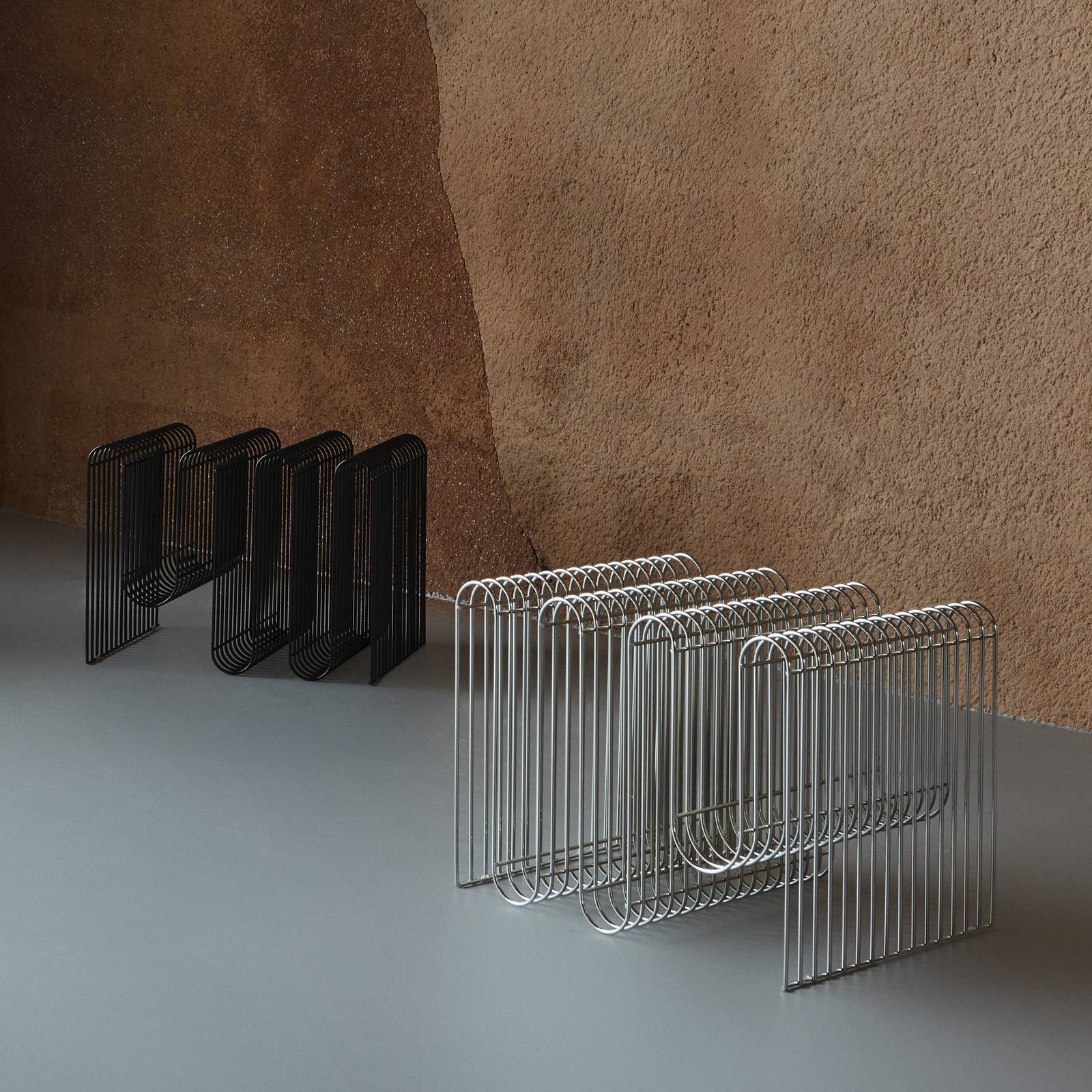 Curva stalen tijdschriftenhouder Het ontwerp van de Curva tijdschriftenhouder is meteen een icoon geworden. De perfecte combinatie van vorm en functie is het geheim van het succes van dit ontwerp. De tijdschriftenhouder werd in 2018 bekroond met de "Lifestyle Award" en is gemaakt van 100% staal. Productinformatie: Gemaakt van 100% staal. Onderhoudsinstructies: Gebruik voor het verwijderen van vuil en stof een vochtige doek met warm water en een mild schoonmaakmiddel. Veeg het item indien nodig af met een zachte, droge doek. Vermijd krassen met een schuurspons, want dat zou het oppervlak kunnen beschadigen.