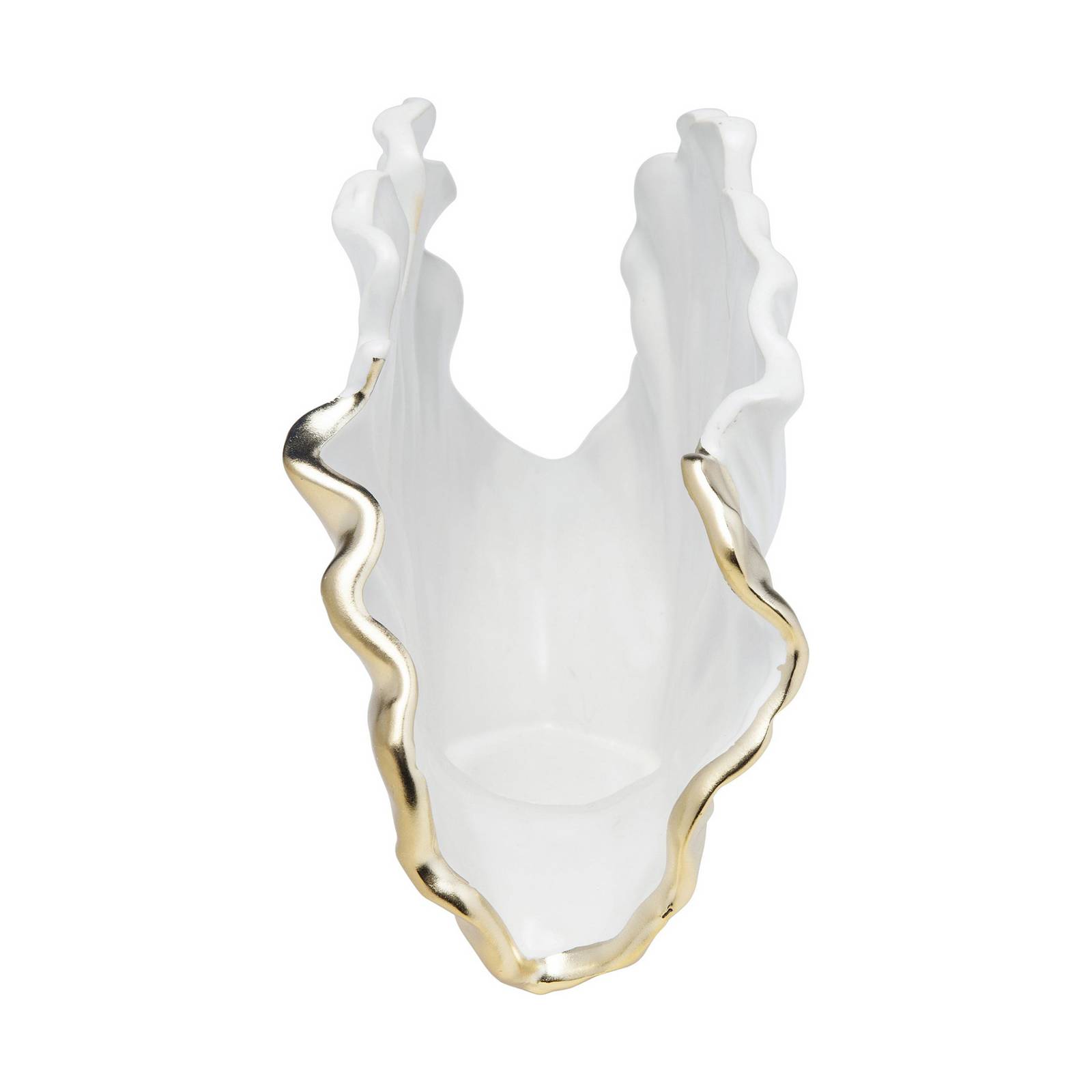 KARE Ginkgo Elegance vaas, hoogte 18 cm, steengoed, wit, goud