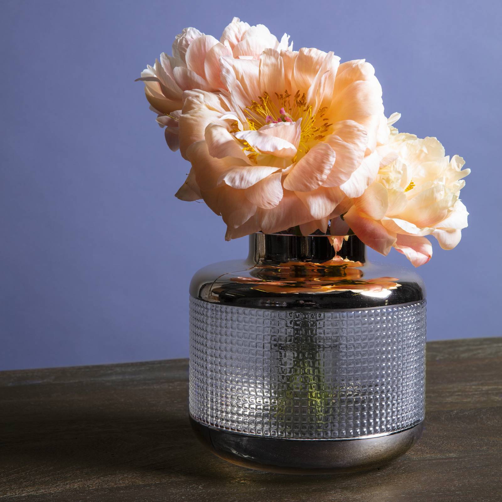 Lizy Shine Multi vaas van gecoat gerecycled glas Deze unieke Lizy Shine Multi decoratieve vaas is perfect als decoratie of tafelvaas voor droogbloemen. Het stralende ontwerp brengt glamour en elegantie in elk huis. De vaas is handgemaakt van mondgeblazen en gecoat glas, elk stuk is uniek. De vaas is niet waterdicht.