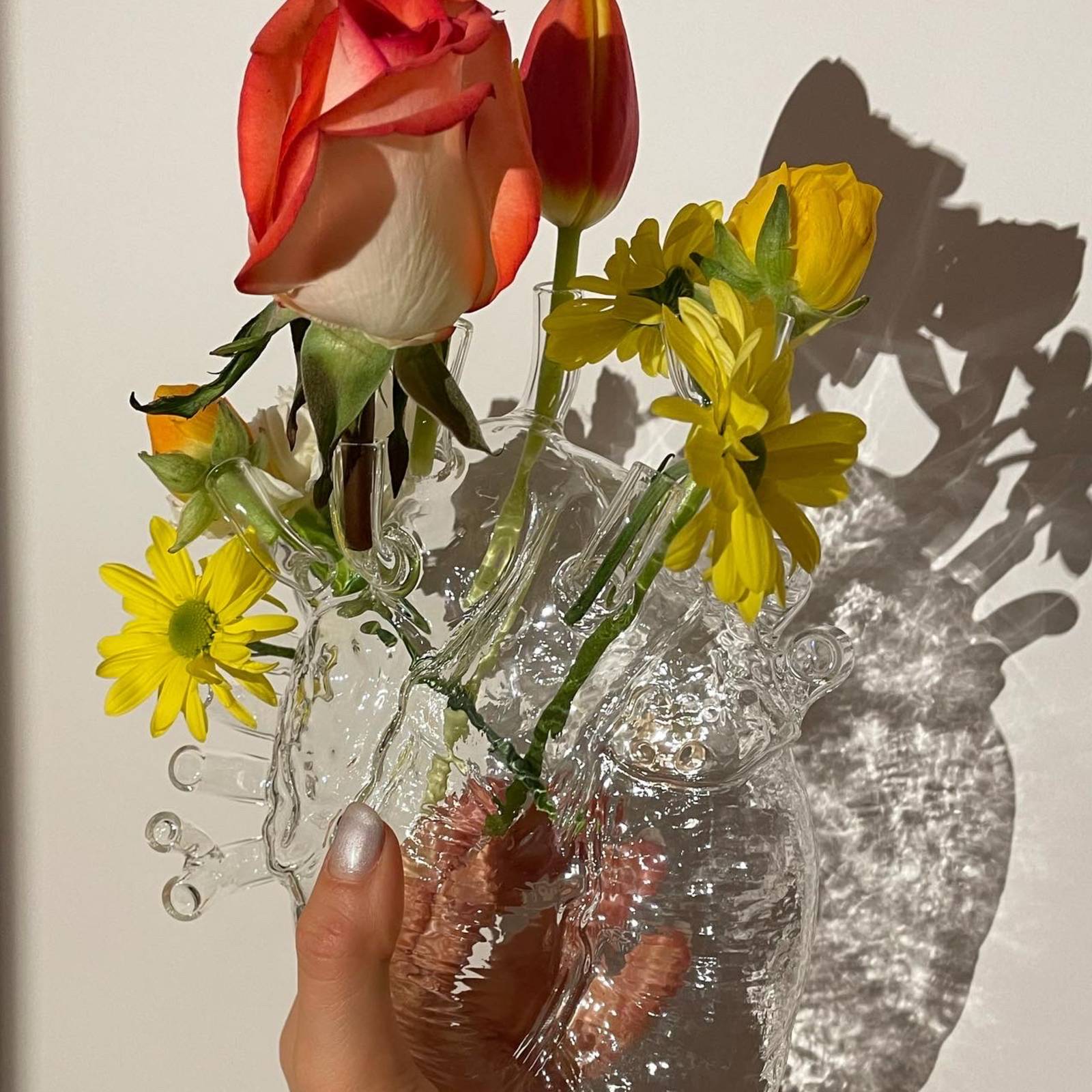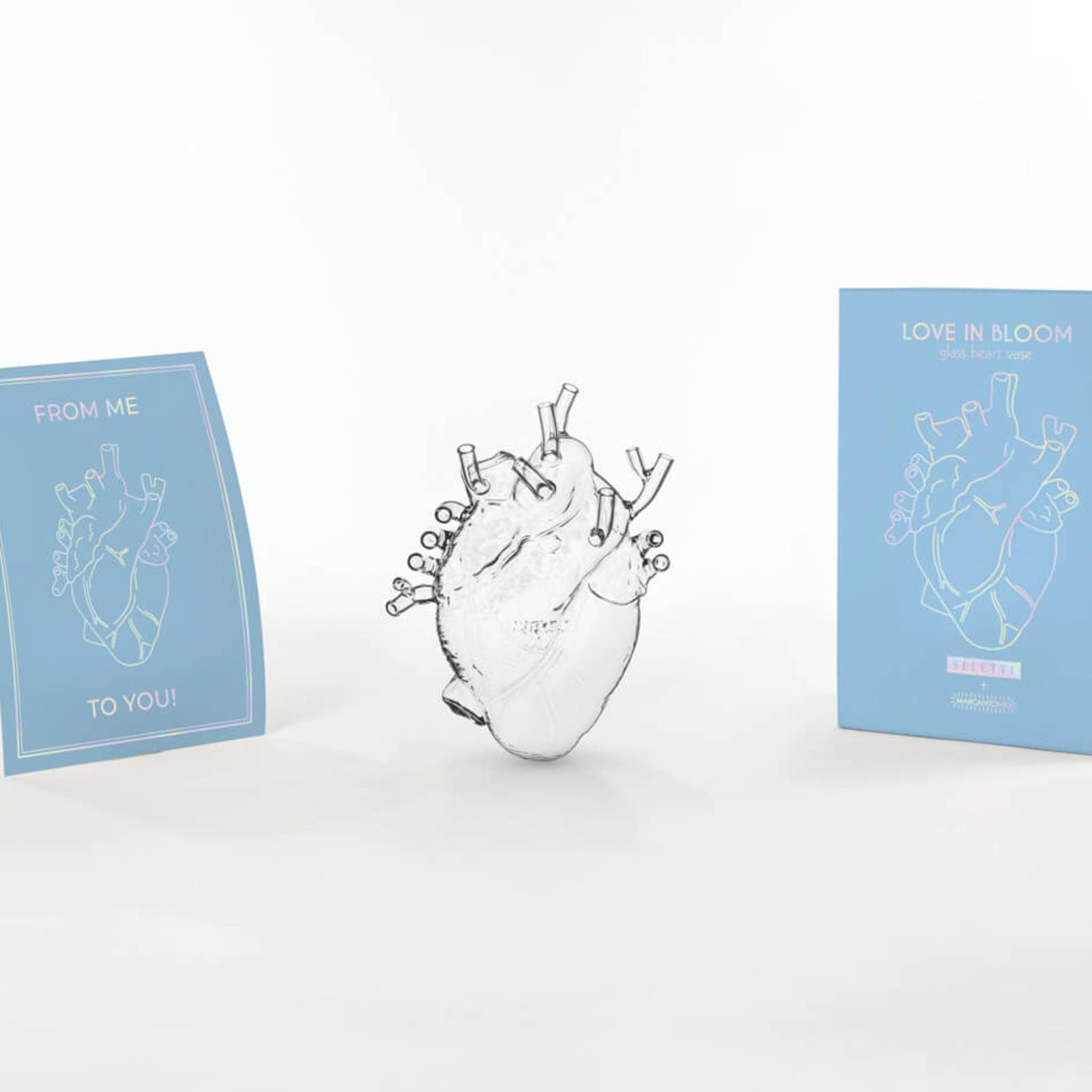 Een hart van glas: Love in Bloom vaas van SELETTI - bloempot en sculptuur in één Love in Bloom is een hartvormige vaas van glas die eruitziet alsof hij uit een essay over menselijke anatomie komt. Een moderne liefde vertaald in een romantisch maar onvoorspelbaar cadeau van SELETTI. Het is geen droom, het is liefde in bloei. Het is geen lente, het is liefde in bloei. Inclusief standaard en geschenkdoos.