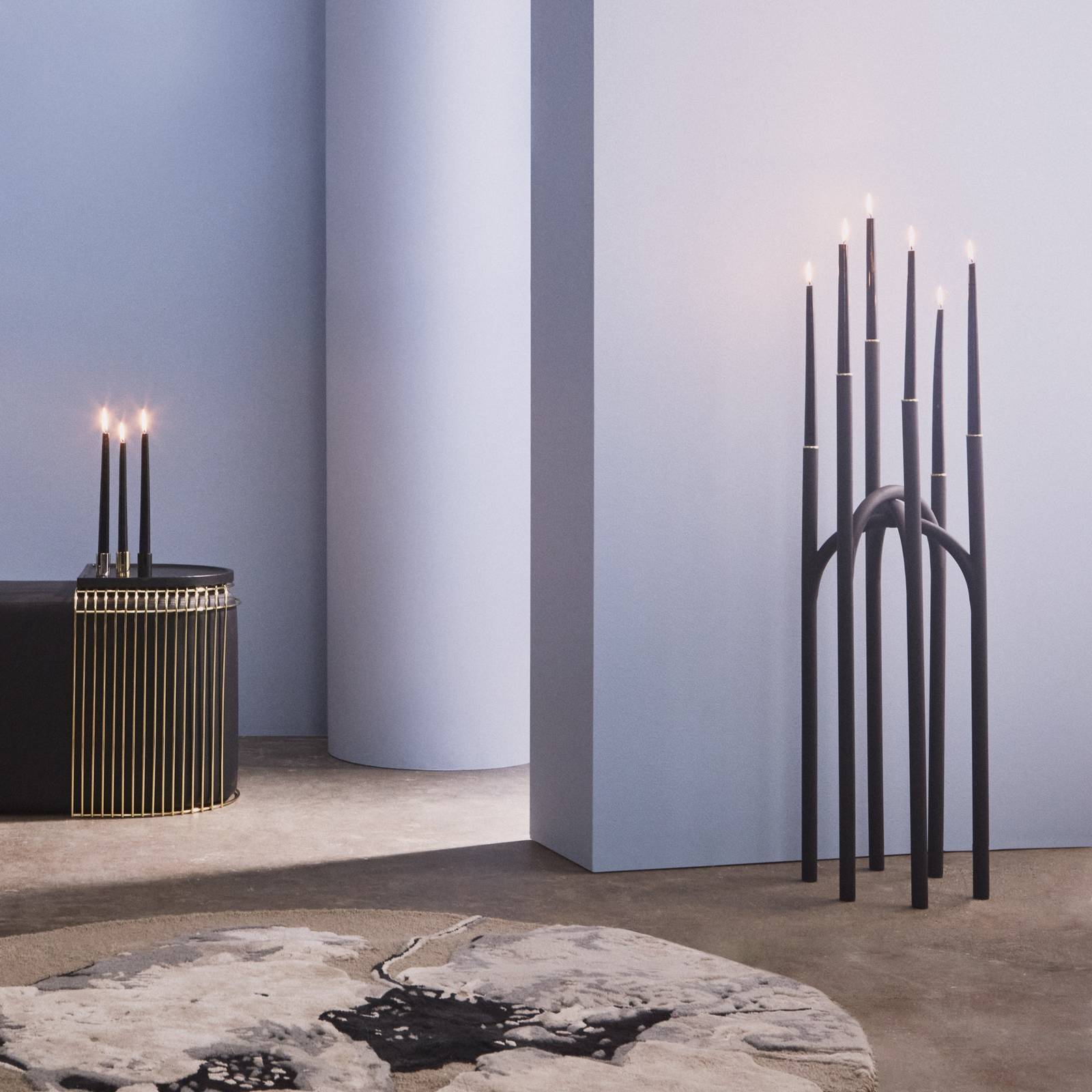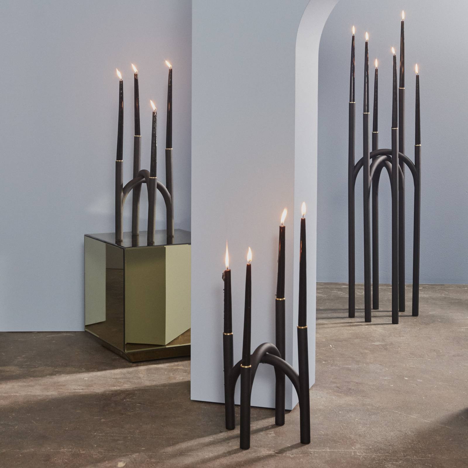 Angui ijzeren kandelaar van AYTM Het nieuwste lid van de Angui familie, de Angui kandelaar van AYTM, herinterpreteert de klassieke tradities van kaarsenhouders. Met zijn verspringende en sculpturale ontwerp ondersteunt de Angui tafel- en vloerkandelaar moeiteloos kaarsen (niet inbegrepen, zie accessoires) en voegt hij nieuwe en majestueuze dimensies toe aan elke ruimte. Dankzij het asymmetrische ontwerp werpen de kaarsen fascinerende schaduwen op verschillende niveaus. productinformatie: Gemaakt van 100% ijzer. Levering zonder kaarsen. Onderhoudsinstructies: Meng een mild afwasmiddel met warm water om vuil en stof te verwijderen. Dompel een zachte doek in het water en veeg het voorwerp met de doek schoon. Vermijd krassen met een schuursponsje, dat kan het oppervlak beschadigen.