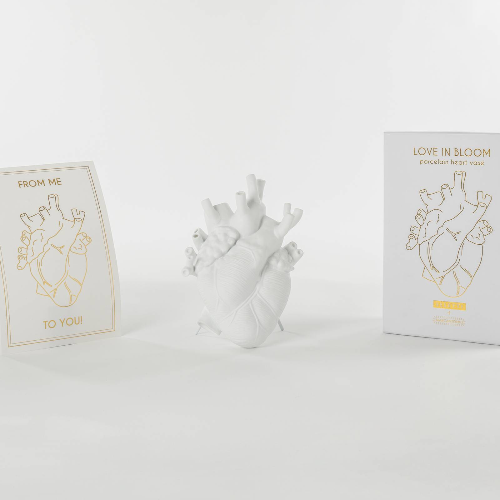 Plantenpot en sculptuur in één: Love in Bloom vaas van hoogwaardig porselein van SELETTI Love in Bloom is een hartvormige vaas die eruitziet alsof hij afkomstig is uit een essay over menselijke anatomie. Een moderne liefde vertaald in een romantisch maar onvoorspelbaar cadeau. Het is geen droom, het is liefde in bloei. Het is geen lente, het is liefde in bloei. Inclusief standaard en geschenkdoos.