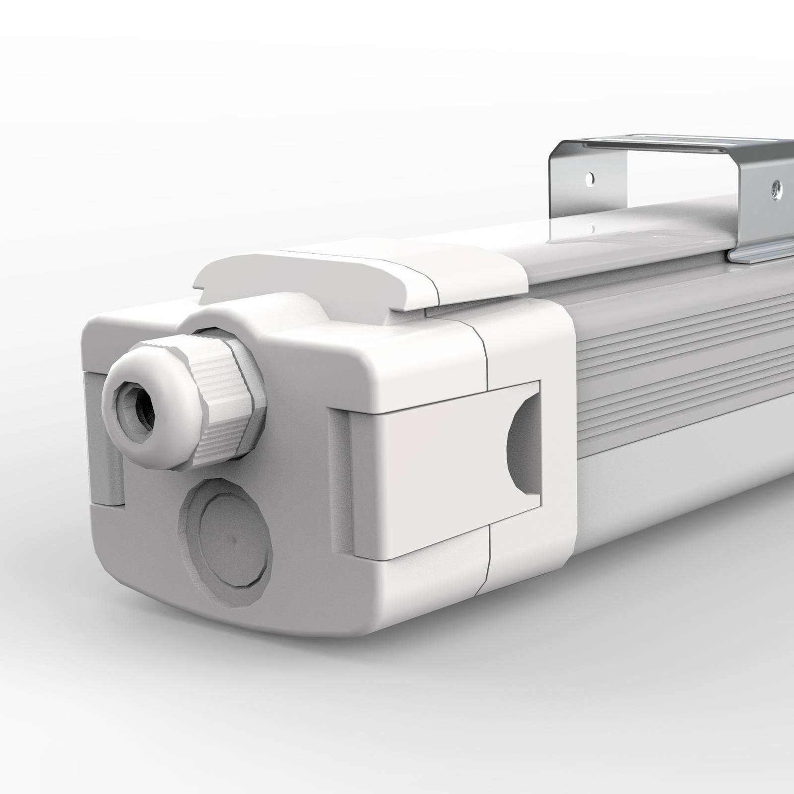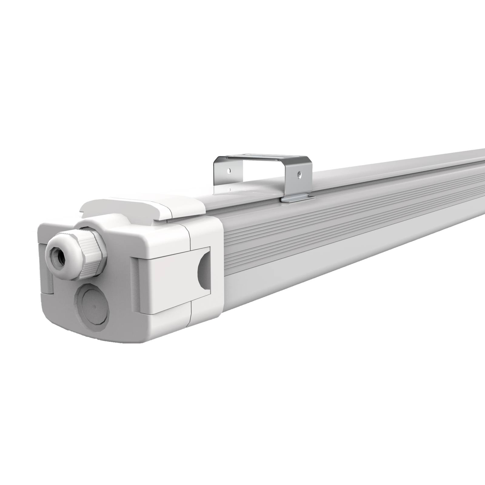LED vochtbestendige armatuur AQUOS 3.0 PROLine met robuuste aluminium behuizing, instelbare lichtkleurDe robuuste behuizing van de LED vochtbestendige armatuur AQUOS 3.0 PROLine is van aluminium. Het deksel is gemaakt van polycarbonaat met een hoge slag- en stootvastheid (IK10). Dankzij beschermingsklasse IP65 is deze vochtbestendige armatuur stofdicht en beschermd tegen waterstralen.De roestvrijstalen bevestigingsklemmen kunnen over de gehele lengte worden verschoven en maken een eenvoudige montage mogelijk, die meestal alleen kan worden uitgevoerd. Dankzij een hefboommechanisme kan het aansluitcompartiment aan beide zijden gemakkelijk en zonder gereedschap worden bereikt. Een aansluitklem (5-polig) is reeds voorbereid voor doorvoerbedrading.Bij de krachtigste versie (40 - 60 watt) kan niet alleen de lichtkleur maar ook het vermogen via DIP-schakelaar worden ingesteld. De lichtstroom is afhankelijk van de ingestelde lichtkleur/vermogen.Technische kenmerken/ eigenschappen:- toepasbaar in een temperatuurbereik van -20 tot 40 °C- beschermingsklasse: IP65- slagvastheidsklasse: IK10- lichtkleur instelbaar (3.000 K, 4.000 K of 6.000 K)- aansluitruimte aan beide zijden voor doorvoerbedrading