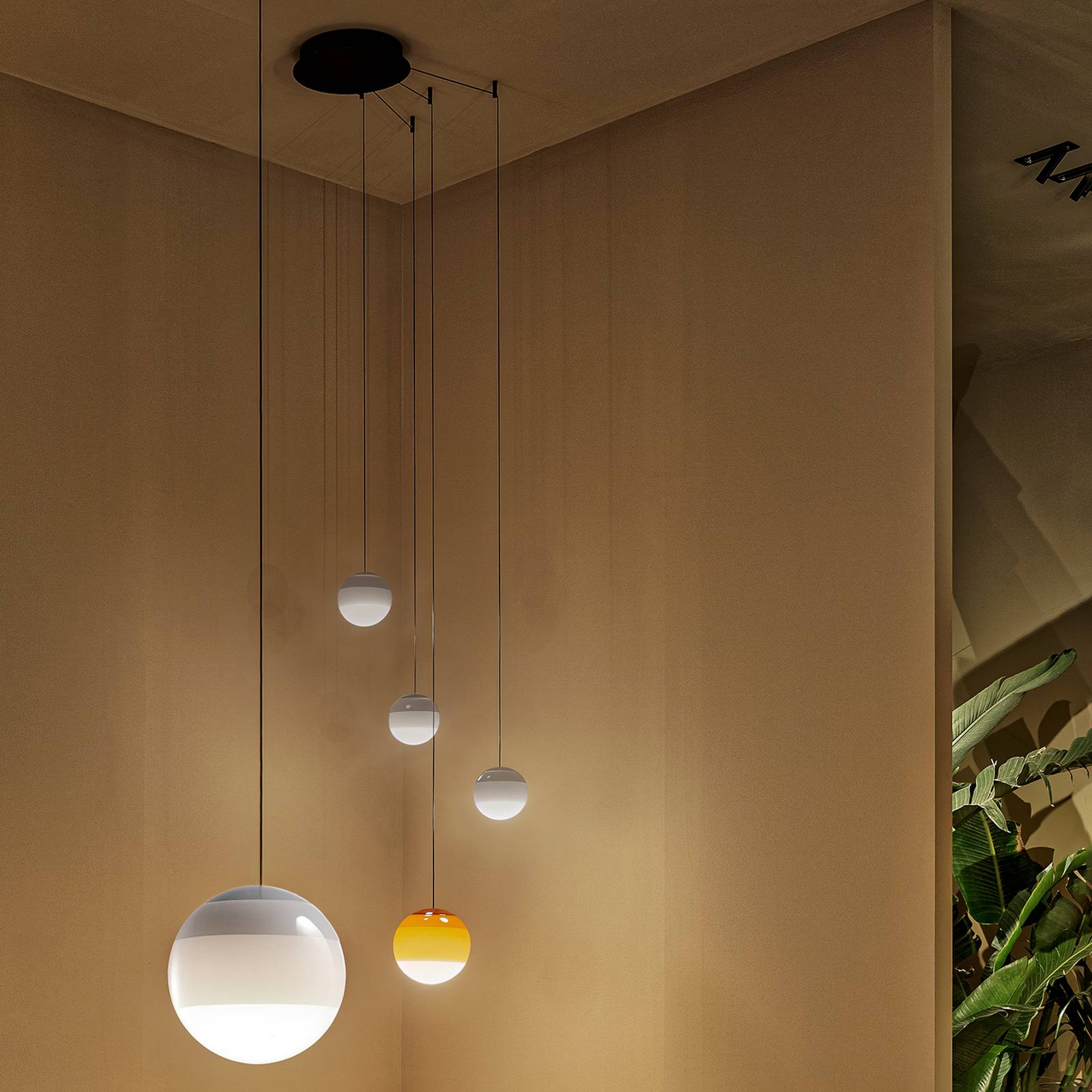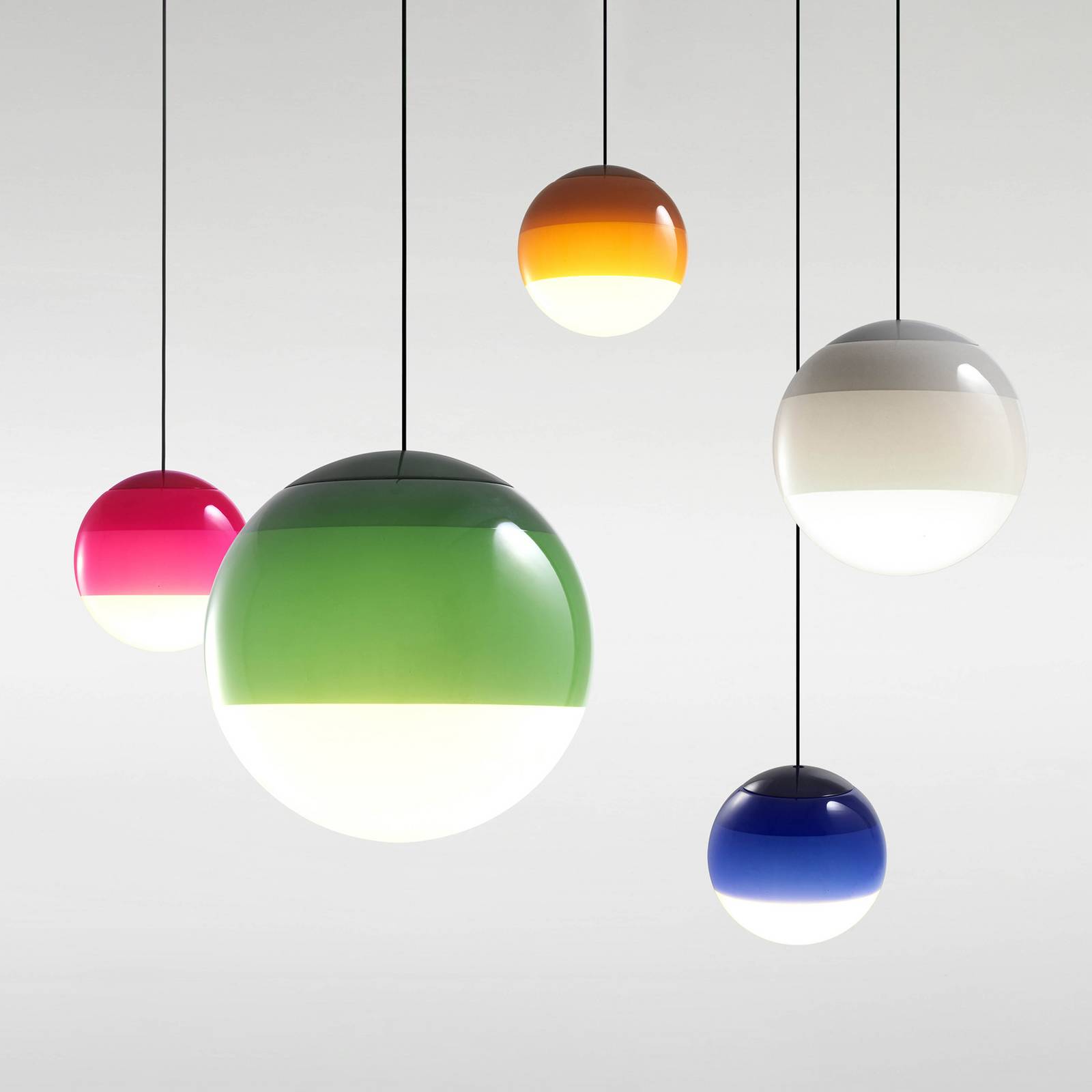 LED hanglamp Dipping Light met glazen kap en kleurnuances voor verschillende lichttinten - Spaanse design lamp van Jordi Canudas Met de LED hanglamp Dipping Light kunnen zowel modern als tijdloos ingerichte ruimtes stijlvol en effectief worden ingericht. De lampenkap is ontworpen als een bol en is gemaakt van geblazen glas. Deze is met een sierlijke kabel verbonden met een cilindrische baldakijn, die het gracieuze ontwerp compleet maakt. In de lampenkap zijn warmwitte leds ingebouwd, die een aangenaam en gezellig licht verspreiden en voor een behaaglijke sfeer zorgen. De ingebouwde LED-module is via TRIAC dimbaar via de huisinstallatie, zodat de lichtopbrengst op elk moment kan worden geregeld en geheel naar wens kan worden ingesteld. De kap is aan de buitenkant versierd met lichte kleurgradaties, die door hun verschillende nuances verschillende lichttinten afgeven en zo een mooi licht creëren wanneer de lamp wordt ingeschakeld. Afzonderlijk of naast elkaar geplaatst kan de Dipping Light worden gebruikt voor een solide omgevingsverlichting en kan zowel in privé- als openbare ruimtes worden gebruikt als lichtbron boven de tafel in de keuken of de woon- en eetkamer, maar ook in restaurants, boetieks of hotels. Het aparte ontwerp is van de Spaanse ontwerper Jordi Canudas, die met zijn Dipping Light-collectie volledig tegemoetkwam aan de wens voor een modern en tegelijkertijd tijdloos ontwerp. Zijn werk ontwikkelde zich in de loop van de tijd van een conceptuele basis naar prototyping en testen met een directe benadering van materialen. Veel van zijn ontwerpen zijn internationaal tentoongesteld en kunnen worden bewonderd in het Museum of Modern Arts in New York of in het Designmuseum "Die Neue Sammlung" in München. Voor de Spaanse verlichtingsfabrikant Marset ontwikkelde Canudas de Dipping Light-serie en creëerde hij een product dat mooi licht produceert en tegelijkertijd voldoet aan de hoogste eisen op het gebied van technische strengheid, innovatie, duurzaamheid en authenticiteit.