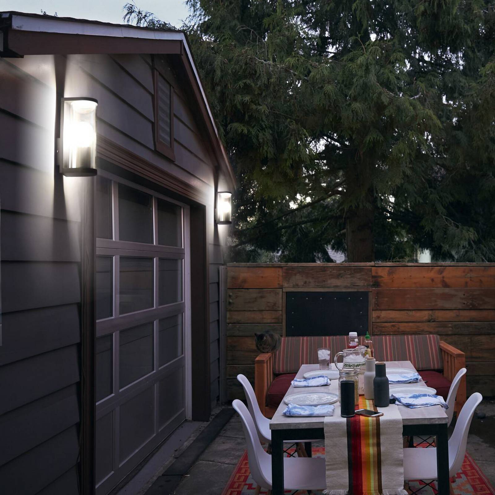 Tijdloze aluminium wandlamp met E27-fitting, glazen diffuser en sensoroptie. Productkenmerken: Geschikt voor slimme toepassingen dankzij compatibiliteit met SMART+-lampen. Minder lichtvervuiling, verlichting op maat (sensorversie). Directe verlichting. Materiaal diffuser: glas. Kleur diffuser: helder. Materiaal behuizing: aluminium. Kleur behuizing: RAL 7016. Beschermingsgraad: IP44. Productvoordelen: grote flexibiliteit bij de keuze van de lamp dankzij E27-fitting. Eenvoudige en snelle installatie. Optie met PIR-bewegingsmelder en daglichtsensor, verkrijgbaar in dezelfde kleur als de behuizing. Langdurige energie- en kostenbesparingen (sensorversie). Toepassingsgebieden: Verlichting van gevels. Entreeverlichting. Terrassen, balkons. Padverlichting. Opritten. Technische uitrusting: Volledige montage- en aansluitaccessoires inbegrepen. Geen lampen inbegrepen. Veiligheidsinstructies: Alle elektrische aansluitingen mogen alleen door gekwalificeerd personeel worden uitgevoerd. Let op, gevaar voor elektrische schokken. Product van beschermingsklasse I. Alle elektrisch geleidende, metalen behuizingsdelen die tijdens het gebruik of tijdens onderhoud in geval van een storing spanning kunnen opnemen, moeten continu met het aardedraad zijn verbonden.
