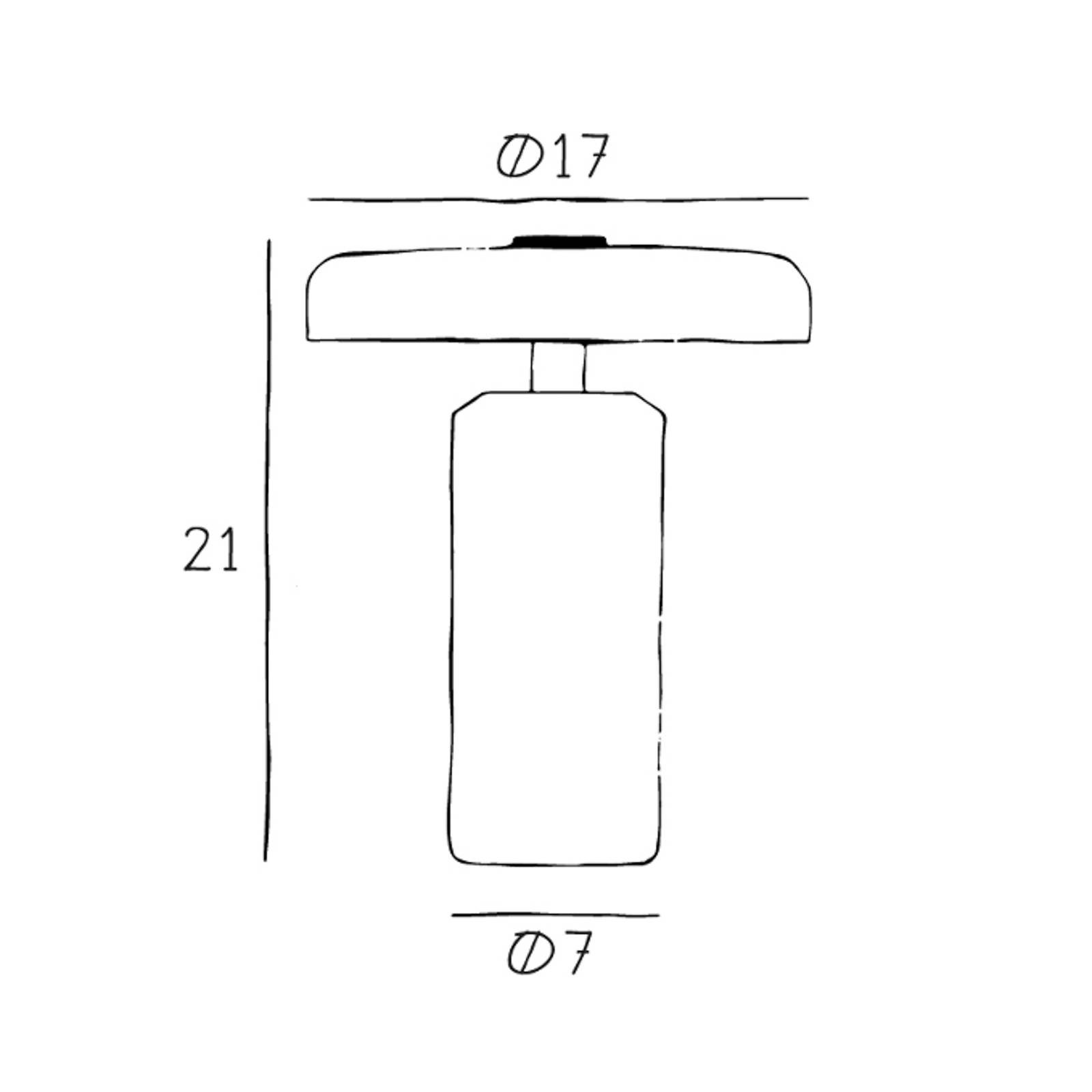 Met 3-staps dimmer & Laadstation: Trip LED tafellamp oplaadbaar gemaakt van marmer en handgeblazen glas, warmwit, USB, IP44 Heldere lijnen en een relatief eenvoudig ontwerp in combinatie met hoogwaardige, esthetische materialen - dat is wat de Trip LED tafellamp met oplaadbare batterij kenmerkt. De fabrikant DESIGN BY US heeft aan elk detail gedacht in deze versie van een draagbare, oplaadbare LED tafellamp: een geïntegreerde LED module produceert warmwit licht dat in drie fasen kan worden gedimd met een schakelaar op de kap. Naast een oplaadstation, dat ook van marmer is gemaakt, wordt ook de bijpassende USB-kabel (zonder netadapter) voor het opladen meegeleverd. Omdat Trip is uitgerust met een oplaadbare batterij en dus draadloos kan worden gebruikt, zijn er talloze gebruiksmogelijkheden zonder mitsen en maren - of zoals het gezegde luidt: "No strings attached". Het sculpturale ontwerp van de gepolijste marmeren behuizing in combinatie met de prachtige kap van mondgeblazen glas geeft Trip een bijzonder exclusieve uitstraling. Met een beschermingsgraad van IP44 is hij geschikt voor zowel binnen- als beschermde buitenruimtes. Trip is ideaal voor gebruik in het midden van de eettafel om een intieme sfeer te creëren, op de boekenplank, in de vensterbank of zelfs op het nachtkastje. Tegelijkertijd kan hij 's avonds ook zacht licht geven in de tuin en is hij welkom op elk balkon. Technische kenmerken: - hoogwaardige materialen: basis van marmer en kap van mondgeblazen glas - incl. marmeren oplaadstation en glazen kap met een diameter van 1,5 meter. Marmeren oplaadstation en 1,5 m USB-kabel (USB-A naar USB-C, zonder netadapter) - warmwitte lichtkleur - geïntegreerde dimmer in 3 stappen - batterijcapaciteit: 7.500 mAh (tot 105 uur verlichtingstijd) - oplaadtijd van 0 tot 100 %: ca. 9 uur - beschermingsgraad IP44 - beschermd tegen spatwater Opmerking: Elke marmeren lamp is uniek. Verschillen in kleur en structuur zijn natuurlijke kenmerken van het marmer, de productfoto kan daarom afwijken.