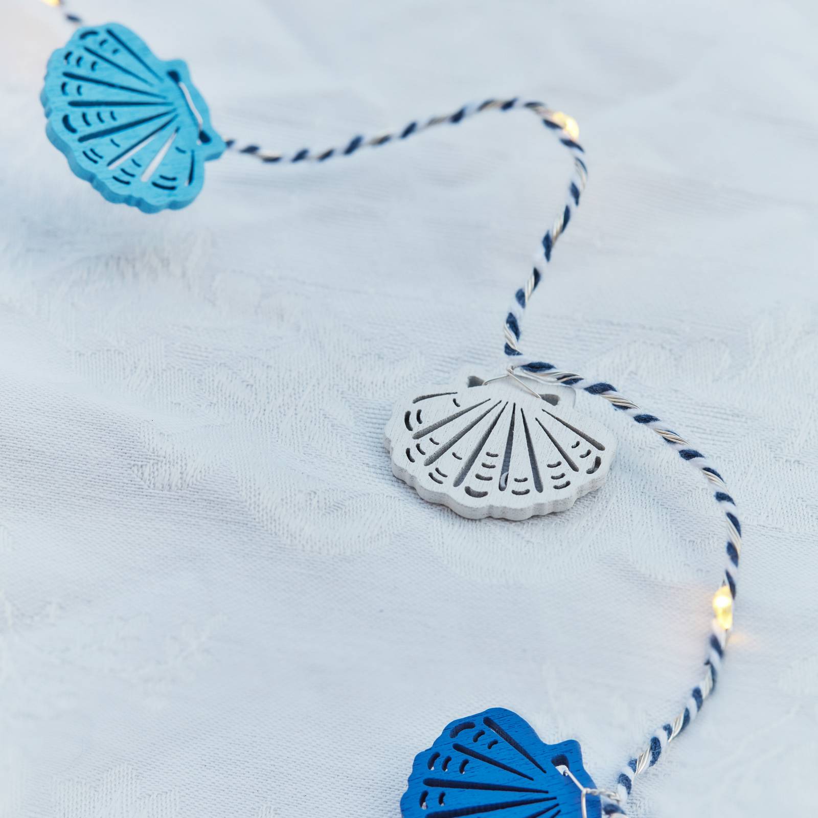 LED lichtketting Selma Clam met 20 lichtpunten voor sfeervolle accenten in blauw De LED lichtketting Selma Clam combineert een modern design met een fascinerend lichteffect. De 20 vast ingebouwde LED-lichtbronnen in een intense blauwe tint creëren een unieke sfeer die elke ruimte verfraait. Of het nu in de woonkamer, eetkamer of slaapkamer is – de lichtketting past harmonieus in verschillende woonstijlen en zorgt voor decoratieve accenten. De lichtketting is gemaakt van hoogwaardig kunststof en overtuigt door zijn duurzaamheid en energiezuinige verlichting. Dankzij de praktische batterijvoeding is hij flexibel inzetbaar en onafhankelijk van stopcontacten. De Selma Clam is de ideale keuze voor iedereen die op zoek is naar een stijlvolle en functionele verlichtingsoplossing.