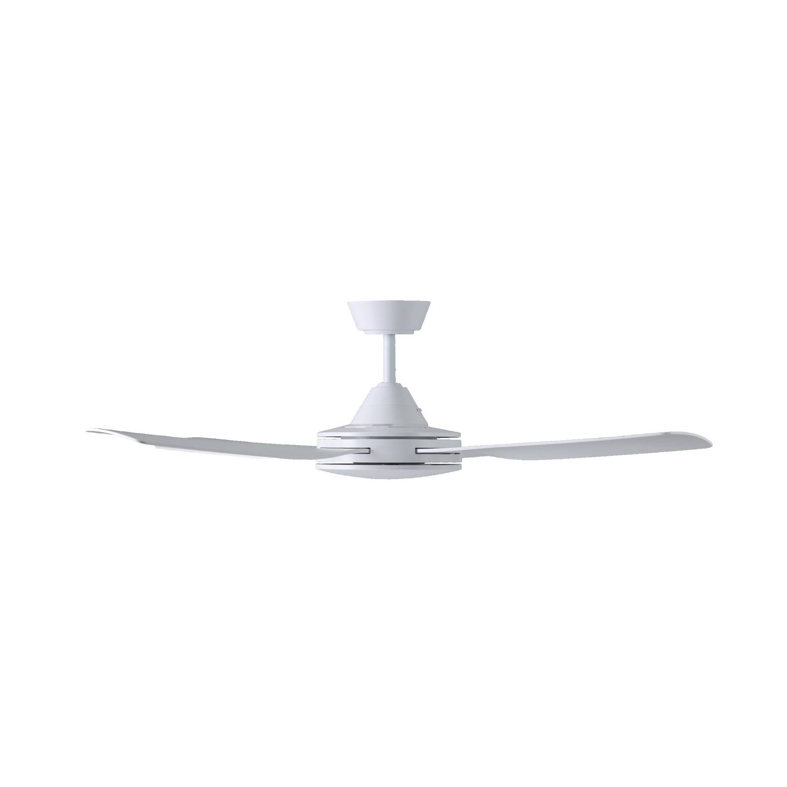 Bondi 1 plafondventilator met afstandsbediening De Bondi 1 plafondventilator is gemaakt van ABS-kunststof van hoge kwaliteit (UV-bestendig) in mat wit en heeft vier bladen. Hij wordt geleverd met een afstandsbediening waarmee hij op drie verschillende snelheidsniveaus kan worden ingesteld en verschillende timers kan worden geselecteerd. Dankzij de omkeerbare draairichting (zomer- en winterstand) kan de ventilator het hele jaar door worden gebruikt. In de zomer om een koel briesje te creëren, in de winter om de verwarmde lucht gelijkmatig te verdelen - Geschikt voor kamers met een oppervlakte van 20-27 vierkante meter - Kan worden gemonteerd op plafonds met een hellingshoek tot 15° Technische gegevens: - AC-motor, motorvermogen 52 W - Geluidsniveau 52 dB - Hellingshoek van de bladen 9,5°
