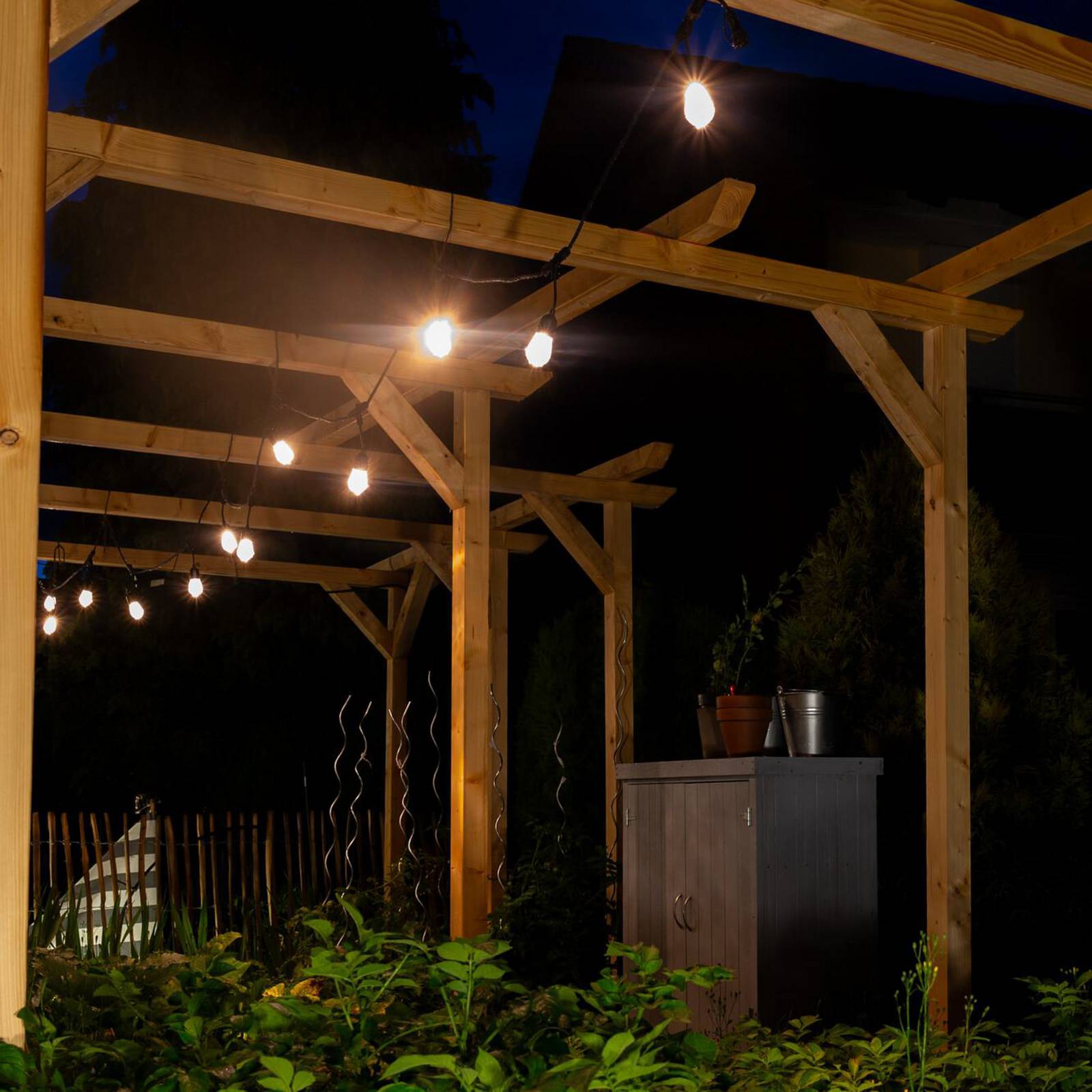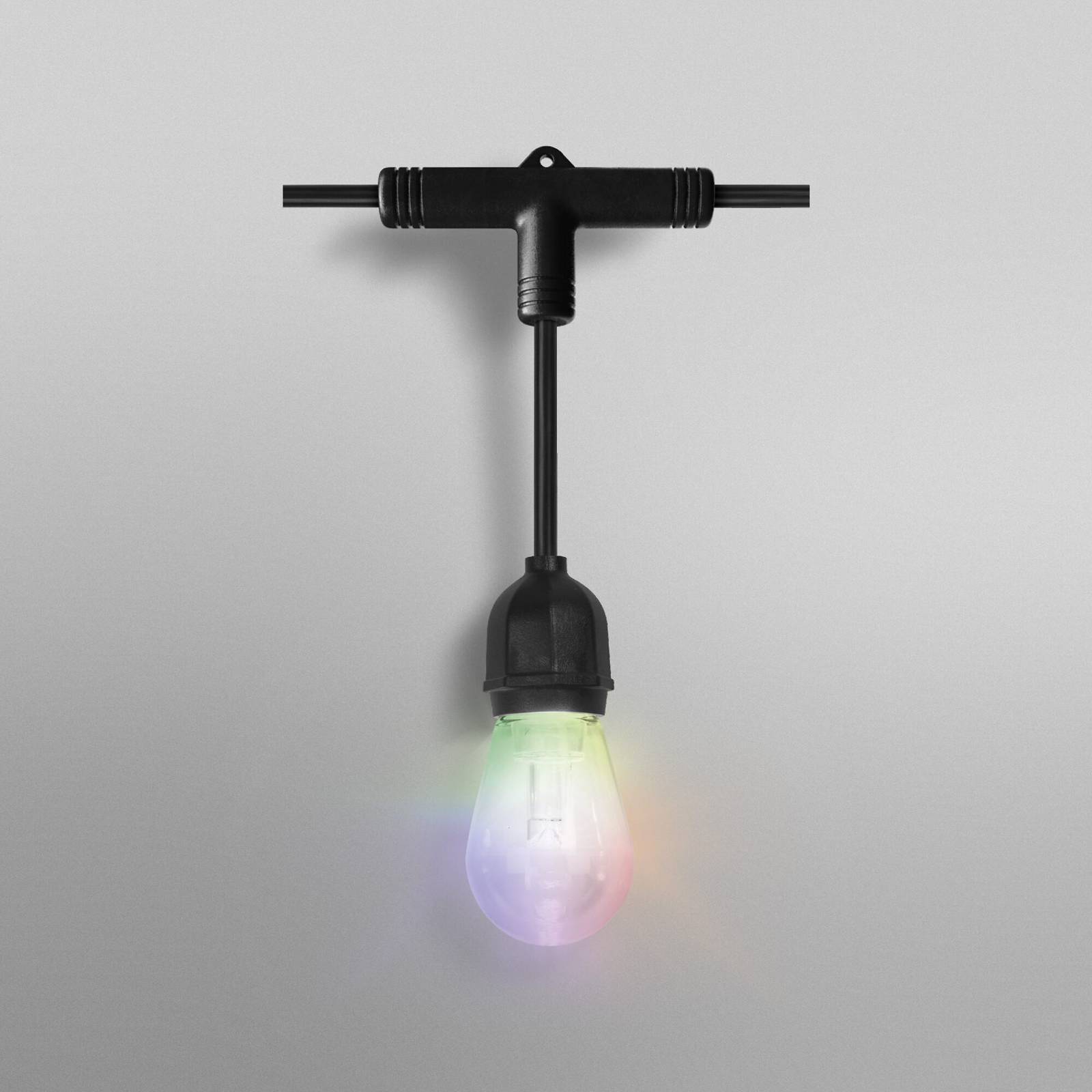 Slimme, 12-lamps LED lichtketting String Meerkleurig - warmwit of kleurrijk stralend De lichtketting is uitgerust met 12 heldere LED-lampjes die warmwit licht of willekeurige kleurrijke gradaties produceren. Na koppeling via wifi kan de lichtketting worden bediend via de LEDVANCE SMART+-app op de smartphone/tablet of via spraakopdrachten (Amazon Alexa of Google Assistant). - bedienbaar via de LEDVANCE SMART+-app voor Android en iOS Outdoor Smart String Light met 12 lampjes. Productkenmerken: Bediening via Google Assistant of Amazon Alexa mogelijk. RGB-kleurregeling, ca. 16 miljoen kleurmogelijkheden instelbaar. Dimbaar. Netwerkprotocol: WiFi. Beschermingsgraad: IP44. Bedienbaar met de SMART+-app. Productvoordelen: Eenvoudige en snelle installatie. Kleurrijke tuinverlichting met slimme bedieningsmogelijkheden. Hoogwaardige materialen. Plug-and-play dankzij 230 V-stekker. Toepassingsgebieden: Algemene verlichting. Tuinen. Terrassen, balkons. Technische uitrusting: Bediening via app of spraakbesturing vereist compatibel smart home-systeem. Voor bediening met de SMART+-app is een mobiele telefoon of tablet nodig.