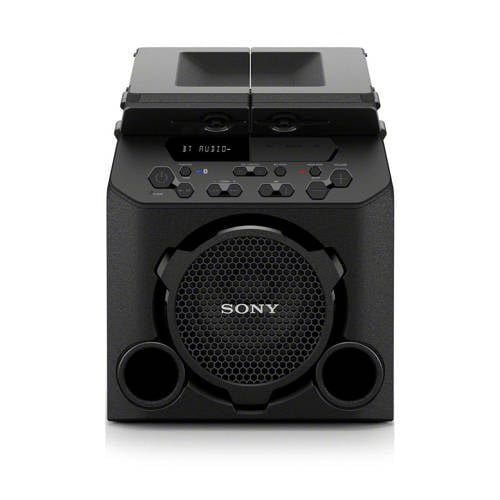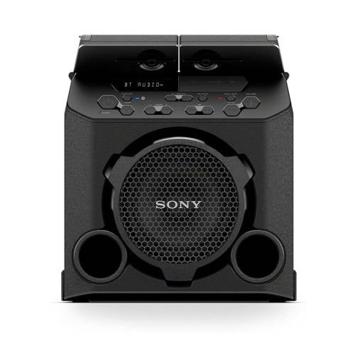 De Sony GTKPG10 portable speaker is ideaal voor gebruik buitenshuis dankzij de speciale modus voor buitenfeesten die geluid beter verspreidt.Wanneer het bovenpaneel opengeklapt is, kun je daar gemakkelijk eten en drinken op neerzetten. Je hoeft je niet druk te maken over knoeien, want het bovenpaneel heeft diepe, geïntegreerde bekerhouders en is spatbestendig en gemakkelijk schoon te maken. Je neemt de GTK-PG10 bovendien gemakkelijk mee dankzij het compacte vierkante ontwerp met handige ingebouwde handgrepen.De GTK-PG10 levert binnen en buiten ruimtelijk, krachtig geluid zonder concessies aan de helderheid. De DSP (Digital Signal Processor) past automatisch de geluidsinstellingen aan voor optimale prestaties in elke omgeving. Met de bovenpanelen gesloten en de bovenste tweeters naar voren gericht, projecteert de GTK-PG10 het geluid voorwaarts voor meer volume en helderheid. Met de bovenpanelen geopend en de bovenste tweeters naar boven en naar buiten gericht, voor een wijder verspreid geluid voor buitenfeesten.Sluit een USB-geheugenstick, smartphone of tablet aan en speel al jouw digitale bestanden af. Je kunt mp3, WMA, AAC en WAV afspelen, zodat het feest altijd door kan gaan. Bovendien kun je tegelijk jouw speaker opladen. Met Bluetooth-technologie kan je al jouw favoriete muziek en afspeellijsten van jouw smartphone naar jouw geluidssysteem streamen.Specificaties- Afmetingen (hxbxd): 36,7x33x30,3 cm- Gewicht: 8,48 kg Energie- Accu/batterij gebruiksduur: 13 uur- Opladen via USB- Tweeter- Woofer- Bluetooth- AUX ingang- FM radio