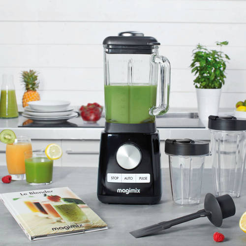 Deze Magimix 11622NLblender heeft een krachtige motor met een vermogen van 1200 Watt met meer dan 22.000 rotaties per minuut en 9 standen voor snelheden waarmee jij in een handomdraai de lekkerste smoothies en soepen, desserts en zelfs je eigen roomijs maakt. De 11622NL heeft automatische programma's voor smoothies, soepen, ice-crusher, desserts en een schoonmaakfunctie. De grote glazen mengbeker heeft een inhoud van 1,8 liter en is hittebestendig én bestand tegen extreme temperatuurverschillen. Alle losse onderdelen zijn geschikt om te reinigen in de vaatwasser, en de blenderkan is al vooraf te reinigen via het handige schoonmaakprogramma. Je krijgt bij de Magimix Blender een receptenboekje met meer dan 85 gezonde receptideeën, inclusief advies van voedingsdeskundigen een spatel en een mengspatel.Afmetingen (hxbxd): 40,5x16,5x16,5 cmGewicht: 4,8 kgLengte aansluitkabel: 1 meter