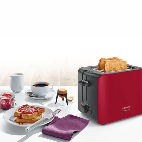 Deze Bosch TAT6A114 compacte broodrooster uit de ComfortLine serie is geschikt voor 2 sneedjes brood. Het apparaat beschikt over vlakke verwarmingselementen en een automatische broodcentrering voor een gelijkmatig roosterresultaat. De TAT6A114 heeft een traploos instelbare roosteringsgraadinstelling met een geïntegreerde opwarmfunctie. Specificaties- Vermogen: 915-1090 Watt- Voor 2 sneedjes brood - Automatische broodcentrering - Kruimellade - Ontdooi-functie - Opwarm-functie - Elektronisch gestuurde roostergraadinstelling met geïntegreerde opwarmfunctie- Hoge lift om kleine broodjes makkelijk uit te nemen- Automatische uitschakeling bij klem zitten brood- Verlichte stoptoets- Snoeropbergmogelijkheid- Kleur: rood/antraciet- Garantietermijn: 2 jaarAfmetingen en gewicht- Afmeting (hxbxd): 18,8x30,7,1x17 cm - Gewicht: 2,2 kg