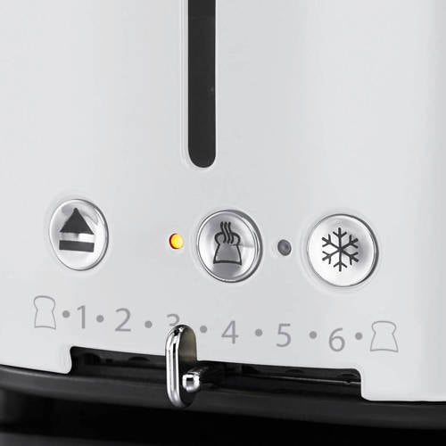 Deze Russell Hobbs 21683-56 Retro Classic Noir broodrooster in de kleur wit, heeft een vermogen van 1300 Watt en is geschikt voor 2 sneetjes brood. Licht geroosterd of juist liever goudbruin, met de variabele instelling voor de bruiningsgraad geniet je altijd van de perfecte toast. De broodrooster heeft een slimme afloopklok, zodat je kunt zien hoe lang het nog duurt. Als je 's ochtens altijd haast hebt, zul je de snellere rooster-technologie van deze Retro broodrooster, waarmee je toast 65% sneller klaar is, zeker kunnen waarderen. Deze retro rvs broodrooster met hoogglans afwerking, heeft een Lift & Look-functie waarmee je je broodjes controleert zonder het programma te onderbreken. De broodrooster heeft ook een broodjeswarmer voor het warm houden van je croissantjes, pistoletjes en broodjes. En je werkoppervlak houd je kruimelvrij dankzij de geïntegreerde kruimellade waarin je kruimels en stukjes opvangt en deze gemakkelijk weggooit. Specificaties- Vermogen: 1300 Watt- Aantal sneden: 2- Automatische broodcentrering- Snelle roostertechnologie/ tot 65% sneller roosteren- Lift & look-functie- Koele wand- Variabele instelling van de bruiningsgraad- Flexibele broodopening- Ontdooi-, annuleer- en opwarmfunctie - Opzethouder voor broodjes- Verwijderbare kruimellade voor een gemakkelijke reiniging- Afloopklok die aangeeft hoeveel tijd de toast nog nodig heeft- Kleur: wit- Garantietermijn: 2 jaarAfmetingen en gewicht- Afmetingen (hxbxd) 31.5x19x24 cm- Gewicht: 2.86 kg