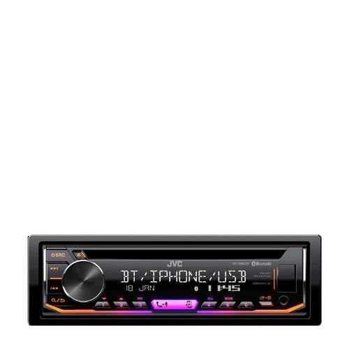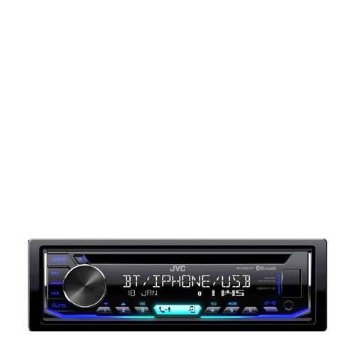 ArtikelomschrijvingMet de JVC KD-R992BT CD-autoradio met bluetooth kun je altijd en overal naar je favoriete muziek luisteren. De autoradio beschikt over sublieme geluidskwaliteit onder alle omstandigheden, waar je ook rijdt. Hij houdt daarbij automatisch rekening met de ruimtelijke eigenschappen van je auto en compenseert de geluidsfrequenties die door het weggeluid worden verstoord. Door toepassing van de nieuwste Bluetooth-technologie kun je ook bij veilig handsfree telefoneren en audiostreamen rekenen op maximale geluidskwaliteit. Twee smartphones kunnen tegelijkertijd verbonden zijn. Natuurlijk is er ook een USB-aansluiting aan de voorzijde, voor het afspelen van muziek van een smartphone of ander USB-medium. Bijladen van je smartphone kan hiermee eveneens en verloopt snel. Kenmerken:- Bluetooth audio streamen & bediening (A2DP, AVRCP)- 5 Bluetooth audio connecties (JVC Streaming DJ)- Bluetooth Voice Dialing (mobiele telefoon met stemherkenning vereist )- Bluetooth(R) Wireless Technology (*Beschikbare functies afhankelijk van mobiele telefoon.)- Bluetooth Hands Free bellen (HFP)- Bluetooth continue verbinding voor 2 telefoons- Bluetooth telefoonboek toegang (PBAP)- Bluetooth iPhone & Android Automatische Koppeling- Android Music Playback (AUDIO MODE en AUTO MODE)- Bluetooth AVRCP 1.5