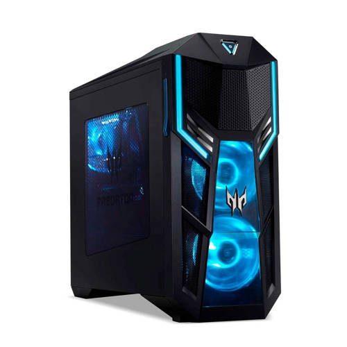 De Acer Predator Orion 5000 PO5-600S I9004 is een gaming desktop met een Intel Core i5-9400F processor en een NVIDIA GeForce GTX 1660 Ti grafische kaart.Perfecte koelingDe Orion heeft zo'n extreme processor dat de beste keuze voor een koeler heel eenvoudig is: de AIO (All-in-One) Cooler Master CPU Liquid Cooler. Combineer dit met strategisch geplaatste inlaten en uitlaatventilatoren in de behuizing en een afgeschermde PSU, en je hebt een systeem dat gebouwd is om te presteren.Iconische Predator behuizingDe Orion-desktop ademt de Predator-stijl met scherpe hoeken en zwart metaal. Het eenvoudig te verwijderen EMI-gecertificeerde zijpaneel geeft je niet alleen een glimp van de binnenkant, maar vermindert bovendien inkomende/uitgaande elektromagnetische interferentie.Alle kleurenKies een patroon dat bij jouw stijl of je favoriete game past. Lichtbalken en behuizingsventilatoren in de geharde behuizing produceren maar liefst 16,7 miljoen kleuren.Afmetingen en gewicht- Afmetingen (hxbxd): 56,3x25,3x52 cm- Gewicht: 17 kg