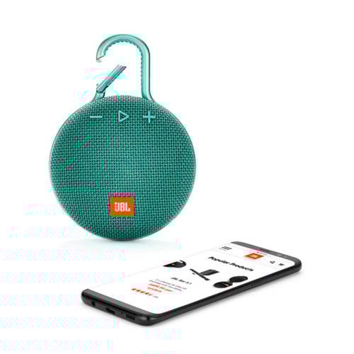 Deze trendy JBL Clip 3 bluetooth speaker is klein van formaat met een verrassend groots geluid. De Clip 3 is IPX7-waterbestendig en dankzij de oplaadbare Li-ionbatterij, die 10 uur afspeeltijd biedt, neem je je muziek overal mee naartoe. Met de ingebouwde ruis en echo onderdrukkende speakerphone voer je kristalheldere oproepen met één druk op de knop. De speaker is inclusief een metalen karbijnhaak voor het bevestigen aan een riem of rugzak. Verbind je smartphone, tablet of notebook eenvoudig via bluetooth en je kunt genieten van je muziek. Heeft jouw toestel geen Bluetooth? Geen probleem, de speaker heeft een 3.5 mm audio jack aansluiting om verbinding te maken.Met de ingebouwde microfoon springt je muziek naadloos over in een hands-free telefoon gesprek.