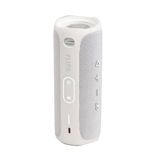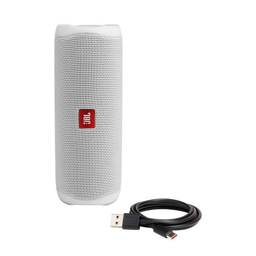 JBL FLIP 5 portable speaker, in de kleur wit, is licht en omdat hij waterdicht is kun je hem overal mee naar toe nemen. DeFlip 5 is IPX7-waterdicht tot 1 meter diep. Dankzij de ingebouwde speakerphone blijf je bereikbaar. Via PartyBoost verbind je de Flip 5 met een onbeperkt aantal JBL PartyBoost compatible luidsprekers voor een weergaloos geluid.Specificaties- Waterproof- Gemiddeld vermogen: 20 WEnergie- Type stroombron: Batterijen- Accu/batterij gebruiksduur: 12 uur- Accu/batterij oplaadtijd: 2,.5 uur- Accu/batterij energie-opslagtechnologie: Lithium-Ion (Li-Ion)- Accu/batterij type: Built-in battery- Accu/Batterij voltage3.6 V- Accu/batterij capaciteit: 4800 mAhLuidsprekers- Aantal drivers: 2- Aantal luidsprekers: 1- Audio output channels: 2.0- Signaal/ruis-verhouding: 80 dBPoorten & interfaces- Verbindingstechnologie: Bedraad & Draadloos- Bluetooth-versie: 4.2- Bluetooth-profielen: A2DP, AVRCPDesign- Veiligheidsfuncties: Dust resistant, Water resistant- Volumeregeling: DigitaalPrestatie- Aanbevolen gebruik: Mobile phone / SmartphoneAfmetingen en gewicht- Afmetingen (hxbxd): 7,4x18,1x7,4 cm1x- Gewicht: 540 g