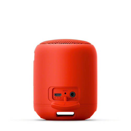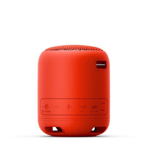 De Sony SRSXB12 bluetooth speaker, in de kleur rood, beschikt over eenoplaadbare accudie tot wel 16 uur mee kan. Neem de bluetooth speaker overal mee naar toe dankzij het compacte formaat. Doordat de Sony SRSXB12 beschikt over een ingebouwde microfoon, is handsfree bellen mogelijk als je telefoon met de speaker verbonden is. Voeg meerdere bluetooth speakers toe en verbind deze eenvoudig met elkaar. Geniet hierdoor extra van een kamer vullend stereogeluid met jou eigen favoriete muziek.Volledig stofbestendig en waterbestendigDankzij de IP67-classificatie3 kunt u uw speaker meenemen naar het zwembad, het bos, de woestijn of waar u maar wilt. De SRS-XB12 blijft spelen, hoe stoffig de omgeving ook is en dat niet alleen de speaker kan zelfs in water ondergedompeld worden.Extra BassDe EXTRA BASS functie van de Sony SRSXB12 zorgt voor een dieper en krachtiger geluid. Ondanks het compacte formaat heeft Sony een technologie weten te ontwikkelen die zorgt voor een nog betere beleving en genot van jou favoriete muziek.Specificaties:- Frequentiebereik: 20 – 20000 Hz- Bluetoothbereik: tot 10 meter- Mono-speaker: 46 mm- Accuduur: tot 16 uur- Waterbestendig (IP67)- Bluetooth 4.2- NFC connectiviteit- Handsfree functieAfmetingen:- Afmeting (BxHxD): 92 x 74 x 74 mm-Gewicht: 243 gram