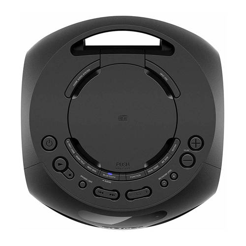 Dit Sony MHC-V02 audiosysteem is gemaakt om het festival thuis te brengen. De box is gemaakt voor mensen die van bas houden. Klik op de MEGA BASS knop en geniet van de extra bas. Je kunt experimenteren met dj-effecten of je vrienden uitdagen met karaoke.Dankzij de bluetooth kun je snel en eenvoudig verbinding maken met de MHC-V11 en je favoriete muziek streamen. Ook kun je een telefoon, tablet of mp3-speler aansluiten via USB-poort, je apparaat wordt tegelijkertijd opgeladen. En wil je lekker meezingen met je favoriete nummer, sluit dan een microfoon aan en zing mee. Geen leuke muziek bij je op je telefoon of MP3-speler? Dan kun je gewoon de radio aanzetten of een cd afspelen. De LED verlichting beweegt mee op de muziek, dit maakt een feestje nog completer.Specificaties- USB aansluiting- Analoge audio-uitgang en ingang- Microfooningang - Bluetooth- FM-tuner- CD-speler- Vermogen: 470 W- Afmetingen (B x H x D): 28,1 x 50 x 30,6 cm- Afstandsbediening- Gewicht: 6 kilogram