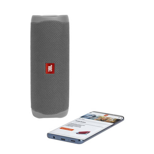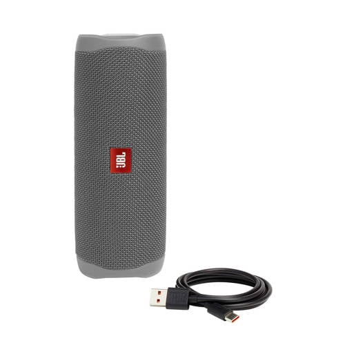 JBL FLIP 5 portable speaker, in de kleur grijs, is licht en omdat hij waterdicht is kun je hem overal mee naar toe nemen. De Flip 5 is IPX7-waterdicht tot 1 meter diep. Dankzij de ingebouwde speakerphone blijf je bereikbaar. Via PartyBoost verbind je de Flip 5 met een onbeperkt aantal JBL PartyBoost compatible luidsprekers voor een weergaloos geluid.Specificaties- Waterproof- Gemiddeld vermogen: 20 WEnergie- Type stroombron: Batterijen- Accu/batterij gebruiksduur: 12 uur- Accu/batterij oplaadtijd: 2,.5 uur- Accu/batterij energie-opslagtechnologie: Lithium-Ion (Li-Ion)- Accu/batterij type: Built-in battery- Accu/Batterij voltage3.6 V- Accu/batterij capaciteit: 4800 mAhLuidsprekers- Aantal drivers: 2- Aantal luidsprekers: 1- Audio output channels: 2.0- Signaal/ruis-verhouding: 80 dBPoorten & interfaces- Verbindingstechnologie: Bedraad & Draadloos- Bluetooth-versie: 4.2- Bluetooth-profielen: A2DP, AVRCPDesign- Veiligheidsfuncties: Dust resistant, Water resistant- Volumeregeling: DigitaalPrestatie- Aanbevolen gebruik: Mobile phone / SmartphoneAfmetingen en gewicht- Afmetingen (hxbxd): 7,4x18,1x7,4 cm- Gewicht: 540 g