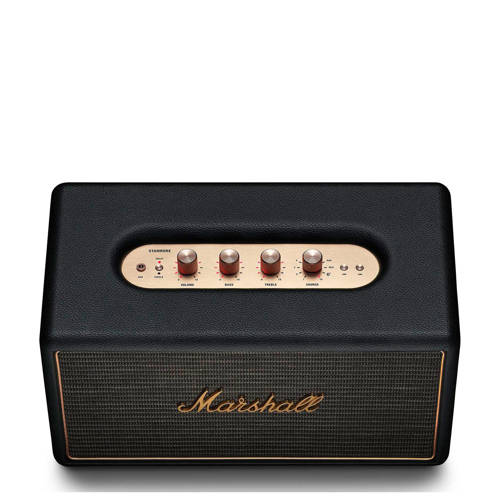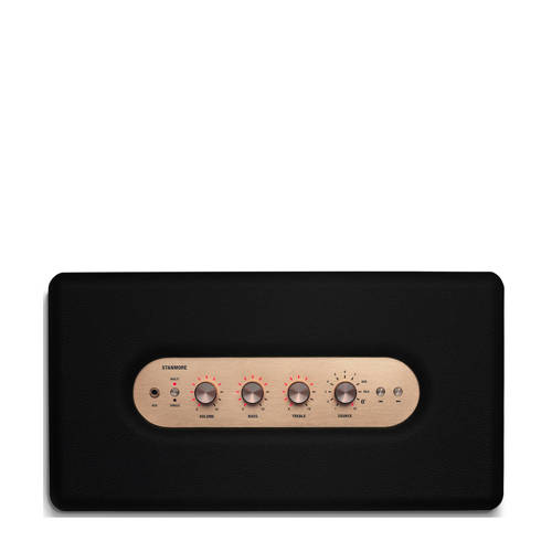 Marshall Multi-Room speaker Stanmore Wi-Fi (Zwart)Het karakteristieke Marshall design met vinyldetails en het iconische scriptlogo zorgt ervoor dat deze speaker een aanvulling is op elke kamer/ruimte. Voorop de speaker is met trots het jaartal 1962 geplaats, dit is het oprichtingsjaartal van Marshall en verwijst naar de meer dan 50 jaar ervaring in het maken van kwaliteitsgeluidsapparatuur.Groter dan levensgroot geluidDe Stanmore biedt je een zuiver en nauwkeurig geluid, het is de meest veelzijdige speaker in de Marshall collectie en is daarom geschikt voor de akoestiek van iedere kamer.Draadloos verbindenBluetooth 5.0 en aptX-technologie biedt een verliesvrij draadloos geluid met een bereik van maximaal 10 meter, met behoud van de connectiviteit. Gebruik je smartphone, tablet of computer met Bluetooth om muziek rechtstreeks naar je speaker te streamen zonder kabels.Pas je geluid aanVerfijn jouw muziek met de Marshall Bluetooth-app of de analoge bedieningselementen op het bovenpaneel van de luidspreker om aan jouw eisen te voldoen.Bedrade connectiviteitDe Stanmore is uitgerust met een RCA- en 3,5 mm-ingang. Dit zorgt ervoor dat de mensen die genieten van een meer analoge geluidservaring ook alles uit de speaker kunnen halen.Multi-host functionaliteitDeze luidspreker is voorzien van multi-host functionaliteit, zodat je eenvoudig twee Bluetooth-apparaten kunt aansluiten en schakelen tussen de twee Bluetooth-apparaten. Zo kun je je favoriete muziek delen met je naasten en familie.Let op: Een accu ontbreekt. Dit apparaat moet dus op netstroom aangesloten worden