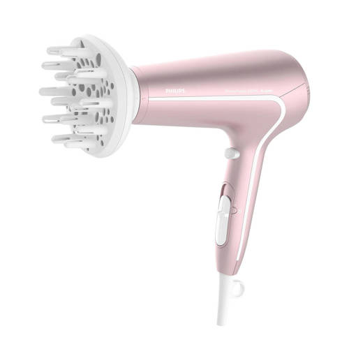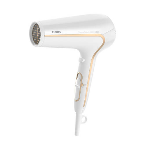 1. Zes flexibele snelheids- en temperatuurstanden voor volledige controle2. Perfecte stylingresultaten met een platte stylingblaasmond3. Coolshot voor je eigen styleSnel drogen bij een lagere temperatuur met ThermoProtect.Snel drogen bij een lagere temperatuur met ThermoProtect met volumediffuser en stylingmondstuk van 14 mm. Bescherm je haar en geniet van snel droogresultaat. Dankzij meerdere snelheids- en temperatuurinstellingen föhn je precies zoals jij dat wilt. Inclusief ThermoProtect voor snel drogen bij een constante, verzorgende temperatuur en Ionic Care voor een pluisvrij en glanzend resultaat.ThermoProtect-temperatuurDe ThermoProtect-temperatuur biedt de optimale droogtemperatuur en extra bescherming tegen oververhitting van het haar. Met dezelfde krachtige luchtstroom krijg je de beste verzorgende resultaten.Professioneel, 2200 WDeze professionele föhn van 2200 W produceert een krachtige luchtstroom. Deze combinatie van kracht en snelheid maakt het drogen en stylen van je haar sneller en eenvoudiger.Snelheids- en temperatuurinstellingenDe vereiste snelheid en temperatuur kunnen eenvoudig worden aangepast om de perfecte stijl te krijgen. Zes verschillende standen geven je volledige controle om nauwkeurig te stylen zoals jij het graag wilt.IonenconditionerGeef je haar onmiddellijke verzorging met ionenconditioner. De negatieve ionen elimineren statische elektriciteit, verzorgen het haar en sluiten de haarschubben, zodat het haar nog intensiever glanst. Het resultaat is prachtig glad, glanzend en pluisvrij haar.Koele luchtstootEen druk op de CoolShot-knop zorgt voor een intense stroom koude lucht, een onmisbare professionele functie voor kappers. Het wordt na het stylen gebruikt om het model te fixeren.Platte stylingblaasmondPerfecte stylingresultaten en een glanzend en verzorgd uiterlijk met een platte stylingblaasmond voor nauwkeurige styling.Snoer van 1,8 mHandig in het gebruik dankzij het 1,8 m lange netsnoer.OphanghaakjeDe rubberen haak zit aan de onderkant van de handgreep en zorgt voor een alternatieve opbergoptie die thuis en in hotels van pas kan komen.