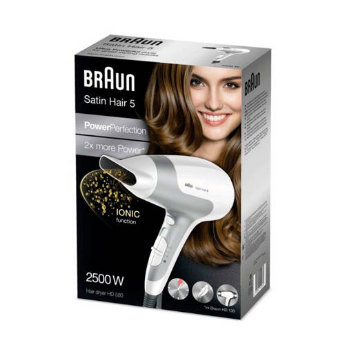2x meer powerDeBraun HD580 Satin Hair 5 Power Perfection haardroger is de krachtigste in de Power Perfection serie en bereikt snel en moeiteloos resultaat, zodat je kostbare tijd bespaart op je schoonheidsritueel. De Braun Satin Hair 5 Power Perfection combineert een optimale droogtemperatuur met een groot luchtvolume voor een snelle afwerking. Hij is krachtig, maar niet zwaar door zijn compacte, ergonomische ontwerp is hij licht en moeiteloos hanteerbaar. Verder beschikt dit model over ionische technologie, die voor zichtbaar minder pluizig haar zorgt. Met zijn elegante, volledig witte ontwerp geeft de Braun Satin Hair 5 Power Perfection haardroger je niet alleen moeiteloos resultaat, maar ook een prachtige stijl.