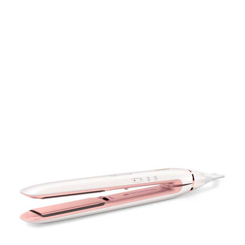 Stijl je haar met de Carmen stijltang Smooth & Shine. Deze stijltang heeft extra lange platen van maar liefst 110 mm die zorgen voor een supersnel glanzend resultaat. Het creëren van prachtig steil haar is dankzij de platen van keramisch materiaal gemakkelijker dan ooit.Het keramische materiaal is bescherment voor je haar daardoor wordt je haar heerlijk zacht. De platen koelen na gebruik niet alleen snel af, maar warmen ook snel op. De ionen technologie zorgt voor een pluisvrij en glanzend resultaat. Met behulp van het ingebouwde LED-display stel je de temperatuur in die het beste bij je haartype past, uiteenlopend van 155 °C tot 230 °C. Dit maakt de Satin Straight geschikt voor zowel dik als dun haar. Dankzij het meedraaiende snoer kun je veilig stylen zonder dat de kabel in de weg zit.De extra lange platen van 110 mm maken deze stijltang perfect geschikt voor dik en lang haar. Grotere lokken zijn namelijk in één keer te stijlen waardoor je sneller klaar bent. De platen zijn bovendien flexibel, zodat ze een gelijkmatige druk op je lokken uitoefenen. Het was nog nooit zo gemakkelijk om prachtig steil haar te creëren.De flexibele platen met ultra smooth ceramic coating verdelen de warmte evenredig. Hiermee voorkom je dat je haren aan de ene kant te warm worden, terwijl de haren aan de andere kant nauwelijks warmte krijgen. Platen van keramisch materiaal zijn daarnaast erg slijtvast en gaan jarenlang mee.