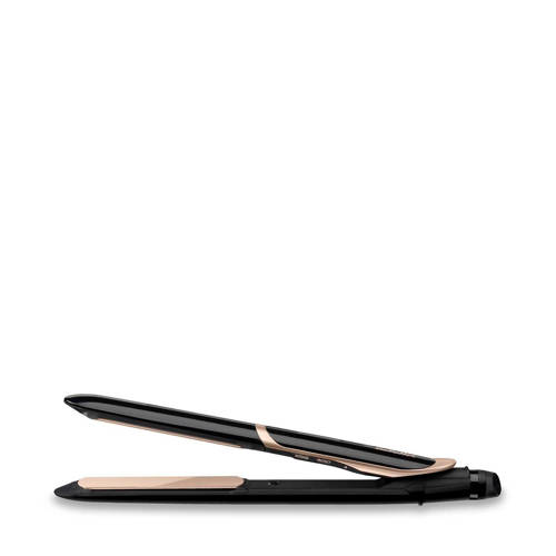 Deze BaByliss ST393E stijltang is uitgerust met ionische technologie waardoor jouw haar pluisvrij uit de stijltang komt. De stijltang beschikt over vijf verschillende temperatuurstanden: van 140 tot 235 graden. Op deze manier is ieder haartype geschikt voor deze stijltang. Bij dun haar gebruik je 140 - 180°C, bij normaal haar 180 - 200°C en bij dik haar boven de 200°C. De platen zijn gemaakt van een titanium en keramische coating. Dankzij het keramische gedeelte wordt de stijltang snel heet en wordt de warmte geleidelijk over het haar verspreidt. De bovenkant is bol waardoor het tevens mogelijk is om krullen te maken. Ook al is je haar 'koud' of droog, deze stijltang maakt iedere lok in één keer steil. Dit is uiteindelijk beter voor je haar en scheelt jouw weer wat tijd.Ook aan de veiligheid is gedacht door BaByliss. De stijltang schakelt automatisch uit als hij niet gebruikt wordt en de snoer draait mee zodat deze niet verstrengeld raakt.