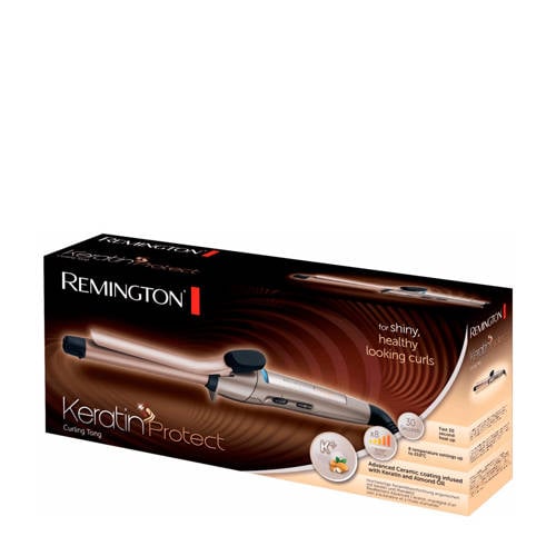 Met de Keratin Protect 19 mm Tong behoort haarbeschadiging tot de verleden tijd: met de acht temperatuurstanden van de krultang creëer je moeiteloos prachtige en gezonde krullen, van elegant lang tot speels kort.De geavanceerde keramische tang is verrijkt met keratine en amandelolie die over je lokken worden verspreid. Dat betekent zorgeloos stylen met optimale verzorging voor souplesse en gezonde glans.Met de 8 warmtestanden tot 210 °C kies je precies de temperatuur die bij jouw haartype past. De buis van 19 mm doorsnee, uitgevoerd in trendy brons en roségoud, maakt in een handomdraai glanzende krullen.De Remington Keratin Protect-collectie bestaat uit innovatieve stylingapparaten die je haar gezond en sterk houden.