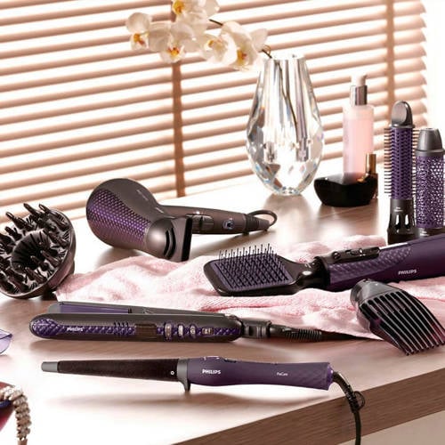 Natuurlijk drogen, stylen en verzorgen Met de Philips HP8656/00 ProCare Airstyler multistyler kun je drogen en stylen tegelijk. Met de airstyler kun je mooie natuurlijke stijlen maken terwijl je je haar optimaal verzorgt. De platte borstel helpt je om een natuurlijke look te creëren zonder je haar te beschadigen. Geavanceerde EHD-technologieBij de geavanceerde Philips EHD-technologie zijn de zodanig hulpstukken ontworpen dat de hitte gelijkmatig wordt verdeeld. Doordat de warmte ook bij hogere temperaturen heel gelijkmatig wordt verdeeld, raakt het haar niet plaatselijk beschadigd. Je haar wordt maximaal beschermd tegen oververhitting en blijft gezond en glanzend.IonenverzorgingDe ionenconditioner zorgt dat je haar niet statisch wordt tijdens het drogen. De negatieve ionen elimineren statische elektriciteit, verzorgen het haar en sluiten de haarschubben, zodat het haar nog intenser glanst. Het resultaat is prachtig glad, glanzend en pluisvrij haar.ThermoProtect-temperatuurDe ThermoProtect-temperatuur biedt de optimale droog temperatuur en extra bescherming tegen oververhitting van het haar. Met dezelfde krachtige luchtstroom krijg je de beste verzorgende resultaten.1000WDeze föhn van 1000W creëert een optimale luchtstroom en droogkracht voor prachtige resultaten, elke dag weer.Verwarmde borstel van 38mmDe verwarmde borstel heeft een extra grote diameter van 38mm. Dankzij de brede staaf is deze perfect voor het stylen van gladde en golvende kapsels.Intrekbare borstelpenDeze gebruiksvriendelijke airstyler is een stijlborstel en krultang in één. Met 1 druk op de knop stop je de pennen terug in de borstel, zodat je de styler door je haar kunt halen, met een prachtige veerkrachtige krul als resultaat.Slanke compressorDe compressor leidt de luchtstroom door de opening naar specifieke gebieden. Het resultaat is een perfecte styling die ideaal is voor het bijwerken of afmaken van je haarstijl.VolumizerMet de unieke en innovatieve volumizer kun je volume creëren daar waar je dat wilt - bij de haaraanzet.Platte borstel om te ontkrullenMet de innovatieve platte borstel om te ontkrullen kun je mooi natuurlijk steil haar creëren, zonder het haar te beschadigen.3 flexibele standenDe vereiste snelheid en temperatuur kunnen eenvoudig worden aangepast om het perfecte resultaat te krijgen. Dankzij de 3 verschillende standen kun je je haar nauwkeurig stylen zoals jij het graag wilt.Borstels met keramische laagDe borstels hebben een keramische laag die je haar beschermd tegen uitdrogen. Het helpt de warmte meer gelijkmatig te verspreiden zodat het haar niet plaatselijk beschadigd raakt door oververhitting en uitdroging.