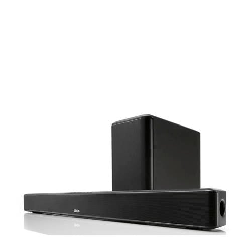 Denon soundbar DHT-S516HDeze Denon DHT-S516H soundbar met draadloze subwoofer is voorizen van HDMI/ARC, Bluetooth, Dolby Digital en DTS-decodering. Sluit je tv eenvoudig aan op HDMI (met Audio Return Channel) met de meegeleverde HDMI-kabel. Met de optische ingang kun je een extra apparaat aansluiten. Koppel je Bluetooth-apparaten draadloos aan de Denon DHT-S516H om je favoriete muziek gemakkelijk te streamen.Verander iedere tv in een thuisbioscoop met de Denon DHT-S516H. De onopvallende, aan de muur monteerbare soundbar levert geluid met hoge getrouwheid dankzij twee 2'x5' precisiedrivers die de hogere bas- en middentonen perfect weergeven, en stemmen en dialogen zo zuiver mogelijk houden. De dubbele ½' dome tweeters geven probleemloos het gehele treble-bereik weer met een respons van tot wel 20 kHz. De bijpassende draadloze subwoofer heeft twee 5¼' woofers die naadloos samenwerken voor foutloze weergave van de indrukwekkend diepe bastonen waar de hedendaagse films en muziek bekend om staan.Je favoriete films en muziek komen volop tot leven dankzij de geïntegreerde Dolby Digital- en DTS-decodering. Daarnaast biedt Denons exclusieve Virtual Surround-verwerking op basis van geavanceerde psychoakoestische algoritmen een rijke surroundsound-kwaliteit die niet onderdoet voor die van een meerkanaals home-theatersurroundsysteem.Naast de Filmmodus voor een breed en overweldigend klankbeeld, beschikt de DHT-S514 over nog twee speciaal ontwikkelde geluidsmodi die op specifieke content zijn toegespitst. In de Dialoogmodus worden dialogen kristalhelder weergegeven, een functie die vooral bij complexe soundtracks in films een enorm pluspunt is. De Muziekmodus zorgt ervoor dat je favoriete nummers met optimale dynamische geluidskwaliteit worden afgespeeld. Je kunt ook kiezen voor de reguliere stereomodus, oftewel, zonder enige vorm van akoestische optimalisering.De DHT-S516H is ook te gebruiken in Nachtmodus. In deze modus luister je naar audio in HiFi-kwaliteit zonder dat het volume op en neer gaat, en kun je tot laat in de nacht naar je lievelingsprogramma's kijken zonder dat andere gezinsleden daar last van hebben. De Nachtmodus werkt niet alleen in stereomodus, maar ook in de andere drie speciale modi.