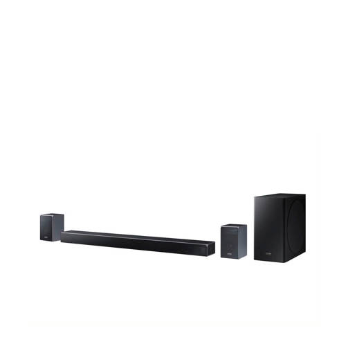 Geef je tv -geluid een boots met deze Samsung HW-Q90R/XN soundbar. Geniet van basgeluid, ook zonder kabels. Plaats de draadloze subwoofer ergens in de kamer en omring jezelf met diepere en rijkere lage tonen. En de draadloze, naar boven gerichte achterspeakers zorgen voor een echt indrukwekkend surroundgeluid. De totaliteit is een overweldigend 7.1.4ch-geluid. De soundbar zorgt voor een bioscoop-surroundervaring in je woonkamer. Laat je omringen door geluid dankzij de speakers met op- en zijwaartse geluidsrichting die je een 7.1.4ch-geluidservaring garanderen. Met object-based geluid zoals Dolby Atmos, DTS: X geniet je van adembenemend entertainment. En dankzij de krachtige geluidsgolven die terugkomen vanaf het plafond, lijkt het geluid je te overspoelen. De adembenemende overheadsound zorgt voor een bioscoopervaring in je eigen huiskamer. Bedien je soundbar met Samsungs Audio Remote app op je Android™ telefoon of tablet. Gewoon even verbinden via Bluetooth™ om de belangrijke functies van je soundbar te bedienen en playlists van je mobiele apparaat of je PC af te spelen, alles via dezelfde app.Je hoort meer met Adaptive SoundDe soundbar maakt gebruik van krachtige AI om het geluid voor elke scène te optimaliseren. Zo hoor je zelfs bij een laag volume alle stemmen duidelijk, zodat ook zachtere gesprekken goed te verstaan zijn.Hoor beter. Speel beter.Bereid je voor op een overweldigende game-ervaring met subwoofers die elke scène tot leven brengen en opwaarts gericht geluid voor een weergaloze surround sound. Als je de soundbar aansluit op je Samsung TV schakelt hij automatisch over op Game Mode, zodat je geen tijd kwijt bent aan het instellen en je direct kunt beginnen met gamen.*Naadloze HDR 10+-ervaringMet de geïntegreerde 4K-verbinding is het aansluiten van 4K-videobronnen zoals je UBD of spelcomputer een fluitje van een cent. De soundbar is zelfs compatibel met HDR 10+-bronnen zodat je van geluid kunt genieten met dezelfde ongekende kwaliteit als je video's. Eén HDMI-verbinding en je bent klaar.Draadloos muziek streamenDe Samsung Soundbar gebruikt Bluetooth om eenvoudig draadloos verbinding te maken met andere apparaten. Nu kun je overal genieten van de muziek op je telefoon, met perfect geluid en zonder kabels. Afmetingen:- Soundbar hxbxd: 8,3x122,6x13,6 cm- Subwoofer hxbxd: 40,3x20,5x40,3 cm