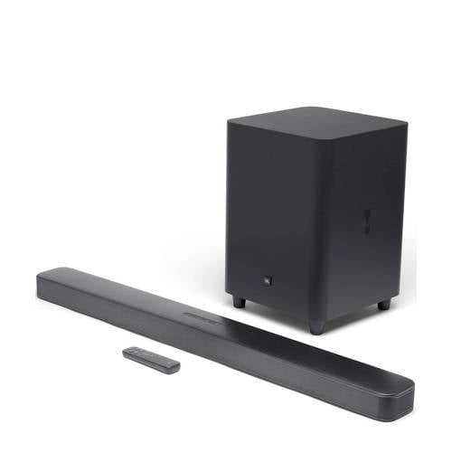 JBL BAR 5.1 soundbar met draadloze subwooferDe JBL Bar 5.1 transformeert van soundbar tot een echte draadloze 5.1 thuisbioscoop voor een grootse kijk- en luisterervaring. De soundbar is uitgerust met afneembare draadloze surround-luidspreker met batterijvoeding en een afspeeltijd van 10 uur, heeft een totaal vermogen van 510 watt, een draadloze subwoofer van 25 cm , 3 HDMI-ingangen voor de aansluiting van 4K apparaten én Bluetooth. Met Dolby Digital, Dolby Pro Logic II en DTS zullen je films, muziek en videospelletjes het beste geluid ooit hebben. De soundbar is uitgerust met JBL SoundShift waardoor je direct kunt schakelen tussen het geluid van je tv en het Bluetooth-geluid van je mobiele telefoon of tablet. De soundbar is geprogrammeerd om te reageren op de afstandsbediening van je tv, dus je kunt alles bedienen met je huidige afstandsbediening.Een echte 4K connectiviteit met 3 HDMI-ingangen en HDMI-uitgangen (ARC)Sluit eenvoudig al je 4K apparaten aan en upgrade je home-entertainment naar Ultra HD.JBL SoundShiftJe kunt direct schakelen tussen het geluid van je tv en het geluid van je mobiele telefoon of tablet.Afneembare, door batterij gevoede draadloze surround-luidsprekersGeniet van echte draadloze surround-sound van 5.1 bioscoopkwaliteit met een afspeeltijd van 10 uur.Werkt met de afstandsbediening van je tvDeze JBL soundbar is ontworpen om bediend te worden met de meestvoorkomende afstandsbedieningen van de meest verkochte tv’s, dus je kunt de huidige afstandsbediening van je tv gebruiken voor zowel je tv als je soundbar.BluetoothDoor middel van Bluetooth is het mogelijk om vanaf je smartphone, tablet of zelfs je pc kun je heel gemakkelijk muziek afspelen via de soundbar. Zo zorg je ervoor dat je favoriete muziek met helder en krachtig geluid je kamer binnen komt