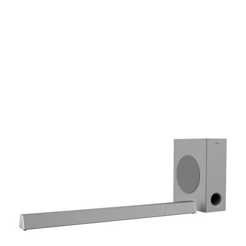 Met de Philips HTL3325/10 3.1 kanaals soundbar met bluetooth en 300 watt uitgangsvermogen kun je nog meer genieten waarvan je houdt, van films tot sport. De drie kanalen brengen het beste naar boven in het geluid de krachtige, compacte draadloze subwoofer verbetert de bas aanzienlijk: explosies knallen door de kamer en muziek heeft een diepe en rijke klank. En met de centrale luidspreker mis je geen dialoog meer. Je hoort elk woord, helder en transparant, het is alsof de spreker bij je in de kamer staat. De subwoofer is draadloos en ondersteunt de Dolby Digital Surround Sound indeling.Ook kun je gemakkelijk als je even geen zin hebt in TV kijken, draadloos muziek streamen via Bluetooth of rechtstreeks via een USB-stick. En met de Met de HDMI-uitgang (ARC) kun je de soundbar bedienen met de afstandsbediening van je TV.Kenmerken:- 3.1-kanaals basreflexsysteem- Bluetooth- Uitgangsvermogen systeem: 300 watt- Uitgangsvermogen luidspreker: 200 W- Uitgangsvermogen draadloze subwoofer: 100WAansluitingen aan de achterkant- Digitale optische ingang- HDMI 1.4-uitgang (ARC)- USB- Audio-ingang van 3,5 mmAfmetingen:- Hoofdunit (hxbxd): 6,73x95x8,17 cm- Subwoofer (hxbxd): 41,2x15x31 cm
