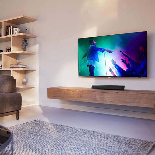 Slimme SoundBar met Google AssistantTil het geluid van uw TV naar een hoger niveau met de slimme SoundBar waarmee u kunt praten. Spraakherkenning op afstand betekent dat u de Google Assistant van deze SoundBar om het laatste nieuws of uw favoriete programma kunt vragen, vanaf overal in de kamer.2 kanalen: drivers met volledig bereikDe knallen van laservuur. Het gejuich van het publiek. De twee kanalen stuwen het geluid van uw favoriete films en series naar nieuwe hoogten. De compacte draadloze subwoofer levert een bevredigende bas: explosies donderen door de kamer en muziek heeft een rijke klank.Ingebouwde Google Assistent. Volledige spraakbedieningDankzij de ingebouwde Google Assistent, kunt u deze SoundBar vragen om het laatste nieuws, uw favoriete programma opzoeken of zelfs uitzoeken in welke andere films die ene acteur speelt! U kunt de Google Assistant ook vragen om uw Google Assistant-compatibele Smart Home-apparaten te bedienen. Door de microfoons met een groot bereik bent u overal in de kamer hoorbaar.Optische ingang, audio-ingang of digitale coaxkabelIs de film voorbij? Tijd voor discussie na de seizoensfinale? Zodra de sensatie op het scherm is afgelopen, schakelt u de SoundBar over naar Bluetooth en zet u een playlist aan. Stream via Chromecast. Of speel uw muziek rechtstreeks via de audio-ingang af. U profiteert van hetzelfde rijkere geluid, ongeacht waar u graag naar luistert.SoundBar met een subtiel designDankzij de geïntegreerde wandsteunen houdt u al uw plaatsingsopties open. Het compacte design van de krachtige subwoofer maakt het eenvoudig deze uit het zicht te plaatsen.HDMI-uitgang (ARC). Bedien de SoundBar met de afstandsbediening van uw TVU kunt aansluiten met HDMI, de audio-ingang, USB, en nog veel meer. Met de HDMI-uitgang (ARC) kunt u de SoundBar bedienen met de afstandsbediening van uw TV.