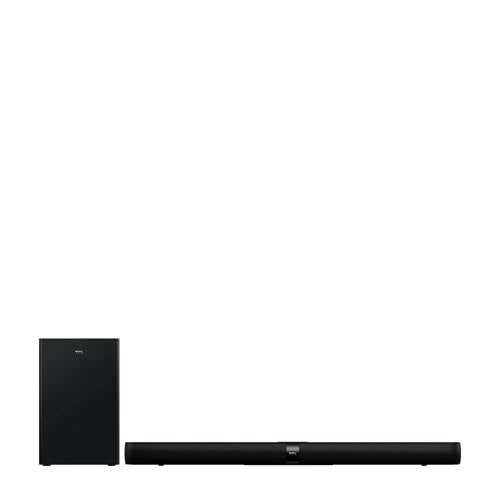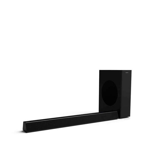 Philips soundbar HTL3320/10Krachtige en realistische geluiden tijdens het kijken van je favoriete film of serie? Met de Philips soundbar van 300 W is het net alsof je middenin de actie zit. Met zijn drie kanalen brengt de soundbar het beste geluid voort uit je favoriete series en films. De compacte draadloze subwoofer die wordt meegeleverd brengt een krachtige bas, explosies donderen door de kamer en muziek heeft een diepe en rijke klank.Centrale luidspreker voor sprankelende dialogen. Mis geen enkel woordDe Soundbar is voorzien van een centrale luidspreker die ervoor zorgt dat het geluid helder, transparant en goed gebalanceerd is waar je je ook bevindt in de kamer. Bluetooth en USB-aansluitingenDe soundbar biedt je ook de mogelijkheid om over te schakelen op je favoriete playlist. Zodat je in alle rust kunt overleggen of juist een feestje vieren na het kijken van je favoriete film. Ook geeft de soundbar je de mogelijkheid om muziek af te spelen vanaf een USB-stick. Uitgesproken geometrisch design. Bescheiden afmetingenDe soundbar is met zijn geometrische design compact en staat goed in iedere woning. Door de meegeleverde wandsteunen kan de set overal in huis geplaatst worden. Dankzij het strakke design van de krachtige subwoofer kun je er ook voor kiezen om deze verdekt op te stellen.HDMI-uitgang (ARC). Bedien de SoundBar met de afstandsbediening van uw TVJe kunt aansluiten met HDMI, de audio-ingang, USB, en nog veel meer. Met de HDMI-uitgang (ARC) kunt u de SoundBar bedienen met de afstandsbediening van uw TV.