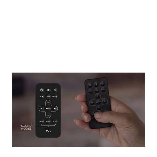 TCL's TS7010 soundbar levert vervormingsvrij geluid op elk volumeniveau en voor elke inhoud. Met speciale componenten voor linker- en rechterluidsprekers, in combinatie met de nieuwe afstelling door ervaren audiotechnici, hoor je elk detail met een heldere helderheid. De opstelling van de luidsprekerkanalen bestaat uit 1 tweeter en 1 full range driver aan beide zijden. Deze set geeft zowel richting aan het geluid als extra helderheid door de toegevoegde tweeter.De soundbar levert ook een ongeëvenaard geluid in zijn klasse, zonder het gedoe van een gecompliceerde opstelling. Je kan verbinding maken met je TV via een Optische, Audio, (Aux/3.5mm) of HDMI-kabel. Plaats de soundbar eenvoudig onder de TV, of monteer hem aan de muur met de bijgeleverde muurbevestigingskit. De niet-corrosieve voetjes beschermen jouw meubels tegen krassen. Deze soundbar is uitgerust met drie klank modes om geoptimaliseerd geluid te leveren voor Muziek, Films en Nieuws.ultieme filmervaringLever superieure kwaliteit surround sound-audio met realistische ruimtelijke aanwijzingen.Draadloos muziek streamenStream muziek draadloos vanaf jouw favoriete Bluetooth-apparaat.Draadloze subwoofer met extra lage tonenBasliefhebbers zullen verliefd worden op deze subwoofer. Ondersteund door draadloze technologie kan je de soundbar gemakkelijk en draadloos uitbreiden naar een surround sound systeem. Geniet van een echte surround sound-ervaring met extra krachtige bas.AudiovermogenAlle audiokabels worden meegeleverd voor een eenvoudige installatie.Flexibele plaatsingOf het nu op een TV-standaard, op een tafel of aan de muur is gemonteerd, het product ziet er sensationeel uit en functioneert zonder compromissen.