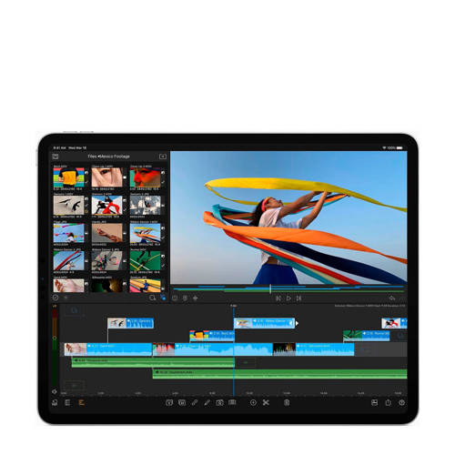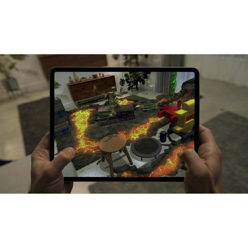 Een indrukwekkend staaltje techniek van glas. Zo snel dat de meeste pc-laptops ’m niet kunnen bijhouden. Uitgerust met pro-camera’s die je de wereld op een heel andere manier laten ervaren. Hier is de nieuwe iPad Pro.Liquid Retina-technologieHet schitterende Liquid Retina-display loopt van rand tot rand en zit boordevol geavanceerde technologie.1 Door de accurate kleuren, True Tone en ProMotion voelt alles op iPad Pro net zo geweldig aan als het eruitziet. Het is niet voor niets het meest geavanceerde mobiele display ter wereld.Pro‑camera’sDoor de geavanceerde camera’s, het grote display, de snelle prestaties en de nauwkeurig gekalibreerde sensoren stond iPad altijd al op eenzame hoogte. Met de groothoekcamera en de nieuwe ultragroothoekcamera maak je perfecte foto’s en video’s. En in combinatie met de microfoons van studiokwaliteit en vier speakers kun je zelfs een multicameraconfiguratie opzetten om films te maken.LiDAR‑scannerLiDAR (Light Detection and Ranging) is een systeem waarmee afstand kan worden bepaald door te meten hoelang het duurt voordat licht een object bereikt en wordt teruggekaatst. Het is zo geavanceerd dat NASA het gebruikt voor de volgende landingsmissie naar Mars. En nu is het zo ontworpen dat het in de dunne en lichte iPad Pro past.De speciaal ontworpen LiDAR-scanner gebruikt een ‘time of flight’-meting om licht te meten dat vanop tot 5 meter afstand wordt teruggekaatst, zowel binnenshuis als buiten. Dit werkt op foton-niveau, gebeurt in nanosecondes en biedt een schat aan mogelijkheden voor augmented reality en meer.Augmented realityOp de nieuwe iPad Pro zijn AR-apps nog levensechter. AR-objecten staan direct op hun plek. Door middel van realistische object occlusion kunnen AR-objecten voor of achter voorwerpen in de echte wereld worden geplaatst. De verbeterde motion capture en people occlusion zijn nauwkeuriger dan ooit. En ontwikkelaars kunnen nog meer indrukwekkende AR‑ervaringen creëren.Schieten en bewerkenMede dankzij het professionele camerasysteem is iPad Pro ongelofelijk veelzijdig. 4K-video’s opnemen, editen en delen doe je allemaal op hetzelfde device. Met de ultragroothoekcamera leg je in één beeld de hele kamer vast, waarna je met Markeringen direct de inrichting kunt veranderen. Je kunt ook een document scannen, een handtekening of notities toevoegen met Apple Pencil, en het met één tikje terugsturen.A12Z BionicDankzij de A12Z Bionic-chip is iPad Pro sneller dan de meeste pc-laptops van vandaag. Je doet alles sneller en soepeler, of het nu alledaagse klusjes zijn of veeleisende grafische taken. En de 8-core grafische processor zorgt dat apps en games nog vloeiender en levensechter overkomen.Trackpad voor iPadOSTrackpadondersteuning voegt een extra dimensie toe aan je iPad. De opnieuw uitgekiende cursorervaring is speciaal ontworpen voor z’n touch-omgeving. De cursor verandert in de tool die je nodig hebt, afhankelijk van het object waar je naar wijst, bijvoorbeeld een knop, symbool of tekst. Dit komt perfect van pas als je heel precies moet werken, bijvoorbeeld in een spreadsheet of bij het bewerken van tekst. Dankzij de cursor en ondersteuning van trackpadbewegingen gebruik je iPadOS op een heel nieuwe, intuïtieve manier.