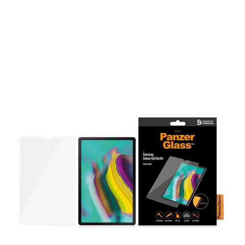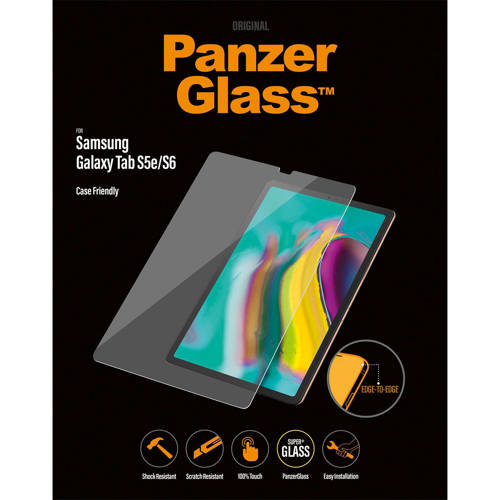 Panzerglass screenprotector Galaxy Tab S5E 10.5' Case FriendlyBescherm het scherm van je Samsung Galaxy Tab S5e met deze Panzerglass screenprotector en voorkom vervelende krassen.Bedekt het hele schermDoor het design kan de screenprotector gebruikt worden in combinatie met een hoes, waardoor ook de rest van de tablet veilig blijft. Door de afgeronde randen van de protector wordt het hele glas bedekt, zonder dat het de hoes in de weg zit.Makkelijk te bevestigenIn tegenstelling tot ander screenprotectors, plak je de Panzerglass niet op het scherm maar hecht deze zich wanneer hij op het glas gelegd wordt. Daarnaast zijn er verschillende doekjes meegeleverd om het scherm schoon te maken.