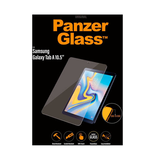 PanzerGlass screenprotector Samsung Galaxy Tab A 10.5”Deze Panzerglass screenprotector is geschikt voor je Samsung Galaxy Tab A 10.5”. Deze Panzerglass protector is gemaakt van volledig vlak gehard glas die het design van je huidige telefoon volgt zodat deze optimaal beschermd istegen schokken en krassen.De vorm van deze PanzerGlass screen protector is geoptimaliseerd om de bescherming te maximaliseren met behoud van functionaliteit en gebruiksgemak. Alle randen zijn zorgvuldig afgerond en gepolijst en bovendien gecoat met een anti-vingerafdruklaag om een uitstekende touch and feel van het originele glas te behouden en te beveiligen.