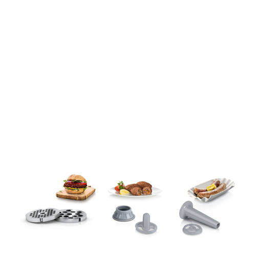 Met deze MFW67440 gehaktmolen kun jij naast jouw eigen vlees en vis malen bijvoorbeeld ook gebruiken voor de bereiding van kebbe en worst en het versnipperen van groenten en kaas. De gehaktmolen kan tot 3,5 kg vlees per minuut verwerken. Met behulp van de bijgeleverde schijvenkun je zelf variëren in dikte en textuur. De MFW67440 is makkelijk in gebruik door het handvat, de snoeropberging en de opslagruimte voor de schijven. Na gebruik kunnen alle lossen onderdelen in de vaatwasser gereinigd worden.Specificaties:- Vermogen: 700 Watt- Aantal snelheden: 1- Maximaal 52,5 kg verwerken per 15 minuten- Antislipvoetjes- Overbelasting beveiliging- Materiaal machine: kunststof - Geïntegreerde opslag voor accessoires- Meer dan 10 functies- Aan/uitknop- Onderdelen vaatwasserbestendig- Snoeropbergmogelijkheid- Kleur: zwart/zilver- Garantietemijn: 2 jaarAfmetingen en gewicht:- Afmetingen ( hxbxd) 29,1x28,3x29,5 cm|- Gewicht: 5,22 kgInhoud verpakking:- Gehaktmolen- Vulhulpstuk- Vulschaal- Raspen- Stopper- Worstendraaier