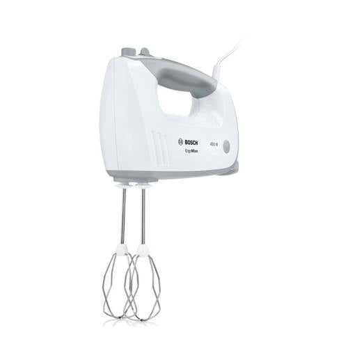 Deze Bosch MFQ36440 handmixer met een vermogen van 450 Watt wordt geleverd met een staafmixervoet en een mixbeker met deksel. De MFQ36440 beschikt over 5 verschillende snelheden en turbostand. De mixer heeft een ergonomisch ontwerp en een SoftTouch grip en is eenvoudig en comfortabel in gebruik.Specificaties- Vermogen: 450 watt- Mixer afneembaar- Aantal standen: 5- Turbo- Uitwerpknop- Blendervoet met QuattroBlade- Accessoires: staafmixervoet, maatbeker met deksel- Vaatwasserbestendige onderdelen- Kleur: wit - Garantietermijn: 2 jaarAfmetingen en gewicht- Afmeting (hxbxd): 15,5x20,8x7,4 cm - Gewicht: 1,3 kgInhoud verpakking- Mixer- Mixer-maatbeker- Deksel- Kunststof mixerstaaf- Klopper, 2x- RVS kneedarm, 2x