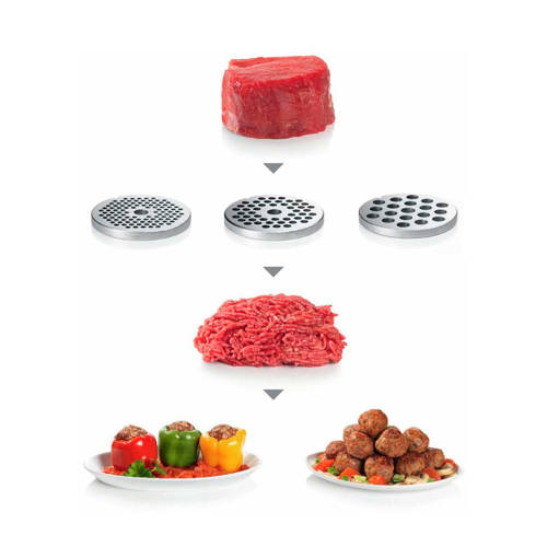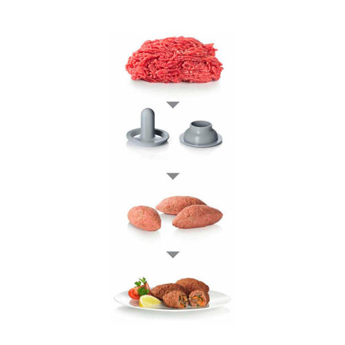 Met deze MFW67440 gehaktmolen kun jij naast jouw eigen vlees en vis malen bijvoorbeeld ook gebruiken voor de bereiding van kebbe en worst en het versnipperen van groenten en kaas. De gehaktmolen kan tot 3,5 kg vlees per minuut verwerken. Met behulp van de bijgeleverde schijvenkun je zelf variëren in dikte en textuur. De MFW67440 is makkelijk in gebruik door het handvat, de snoeropberging en de opslagruimte voor de schijven. Na gebruik kunnen alle lossen onderdelen in de vaatwasser gereinigd worden.Specificaties:- Vermogen: 700 Watt- Aantal snelheden: 1- Maximaal 52,5 kg verwerken per 15 minuten- Antislipvoetjes- Overbelasting beveiliging- Materiaal machine: kunststof - Geïntegreerde opslag voor accessoires- Meer dan 10 functies- Aan/uitknop- Onderdelen vaatwasserbestendig- Snoeropbergmogelijkheid- Kleur: zwart/zilver- Garantietemijn: 2 jaarAfmetingen en gewicht:- Afmetingen ( hxbxd) 29,1x28,3x29,5 cm|- Gewicht: 5,22 kgInhoud verpakking:- Gehaktmolen- Vulhulpstuk- Vulschaal- Raspen- Stopper- Worstendraaier