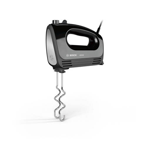 Deze Bosch MFQ2420B handmixer heeft een ergonomisch ontworpen behuizing en is geschikt voor links- en rechtshandige gebruikers. De mixer is voorzien van Bosch technologie en een moderne motor met een vermogen van 400 Watt die krachtig maar tegelijkertijd licht en stil is. Daarnaast beschikt de MFQ2420B over 4 verschillende snelheden, een moment- en turbostand. Al het plastic dat met voedsel in contact komt is BPA vrij.Specificaties- Vermogen : 400 watt- Mixer afneembaar- Aantal standen: 4- Moment- en Turbostand- Aparte uitwerptoets voor gardes en kneedhaken- Accessoires: 2 x Turbo-klopper, 2 x kneedarm in roestvrij staal- Vaatwasserbestendige accessoires- Kleur: zwart- Garantietermijn: 2 jaarAfmetingen en gewicht- Afmeting (hxbxd): 15,3x20x7,3 cm- Gewicht: 0,9 kg