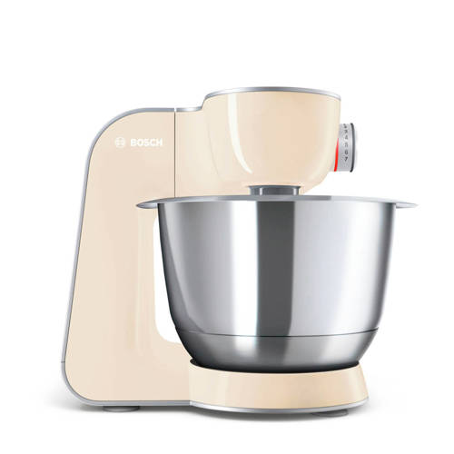 De Bosch MUM58920 is een krachtige keukenmachine met een vermogen van 1000 Watt, 3D PlanetaryMixing en een EasyArmLift. De keukenmachine heeft 7 snelheden en een momentschakelaar en een elektronische toerenregeling voor een constante snelheid. De motor bouwt de snelheid geleidelijk op om spetteren te voorkomen. De grotendeels geborstelde rvs mengkom heeft een inhoud van 3.9 liter wat goed is voor maximaal 2.7 kg cakebeslag of 1.9 kg gistdeeg. De kunststof blenderbeker heeft een inhoud van 1.25 liter. De MUM58920 is veelzijdig dankzij de brede range aan optionele accessiores.3D PlanetaryMixingSnel en perfect mengen van alle ingrediënten, dankzij het verbeterde planetaire mengsysteem met een uniek roterende beweging in drie dimensies tegelijk.EasyArmLiftGemakkelijk en moeiteloos verplaatsen van de 3-zone multifunctionele arm door een druk op de knop en eenvoudig vullen van de kom dankzij de automatische parkeerstand positie.Meegeleverde toebehoren1 x Deksel, 1 x Groentesnijder, 1 x Roestvrijstalen mengkom, 1 x Metalen kneedhaak, 1 x Kunststof mixerbeker, 1 x Tweezijdige raspschijf, 1 x Middelfijne raspschijf, 1 x Klopper, 1 x Tweezijdige snijschijf Specificaties- Vermogen: 1000 Watt- Kliksystem- 7 snelheidsstanden en een momentstand- Transparant anti-spatdeksel met vulschacht- Alle kunststof materialen welke in contact komen met voedsel zijn BPA vrij- Oververhittingsbeveiliging- Herinschakelingsbeveiliging- Met Interactieve recepten DVD en handige opbergtas zodat kan de patisserie set ruimtebesparend kan worden opgeborgen in de kom- Kleur: vanille/zilver- Garantietermijn: 2 jaar