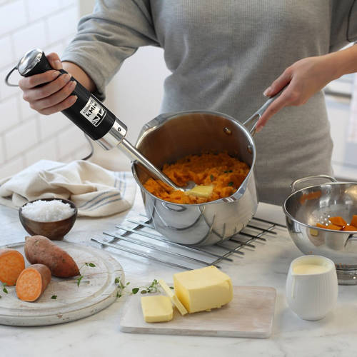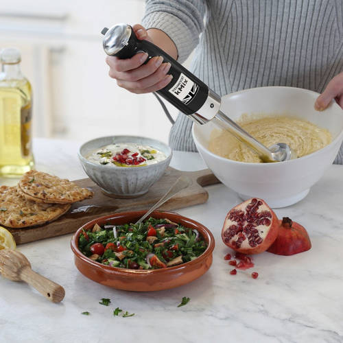 Deze Kenwood HDX750BK staafmixer, in de kleur zwart, heeft een verbeterd stijlvol Brits design, een TriBlade systeem, is ergonomisch en eenvoudig met één hand te bedienen. Het vermogen van 800 Watt geeft uitmuntende prestaties bij het mengen van allerlei ingrediënten. De staafmixer heeft een afneembare rvs staaf met rvs messen. HDX750BK is eenvoudig te gebruiken en te reinigen.Verbeterde eenhandige bedieningZeer vloeiende beweging tussen de 5 snelheden (en pulsefunctie) en bouwt zorgvuldig op naar de gewenste snelheid zonder ingrediënten te morsen.TriBladeSysteem met drie duurzame roestvrijstalen messen, voor 50 % efficiënter en gecontroleerd hakken en mixen.
