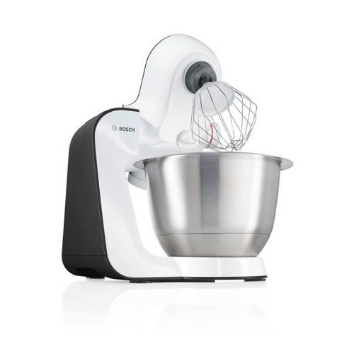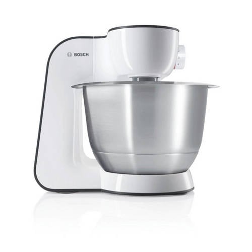 De Bosch MUM54A00 is een krachtige keukenmachine met een vermogen van 900 Watt, 3D PlanetaryMixing en een EasyArmLift. De MUM54A00 heeft 7 snelheden en een momentschakelaar en een elektronische toerenregeling voor een constante snelheid. De motor bouwt de snelheid geleidelijk op om spetteren te voorkomen. De rvs mengkom heeft een inhoud van 3.9 liter wat goed is voor maximaal 2.7 kg cakebeslag of 1.9 kg gistdeeg. De automatische parkeerstand maakt het vullen van de kom gemakkelijk.3D PlanetaryMixingSnel en perfect mengen van alle ingrediënten, dankzij het verbeterde planetaire mengsysteem met een uniek roterende beweging in drie dimensies tegelijk.EasyArmLiftGemakkelijk en moeiteloos verplaatsen van de 3-zone multifunctionele arm door een druk op de knop en eenvoudig vullen van de kom dankzij de automatische parkeerstand positie.Meegeleverde toebehoren1 x Deksel, 1 x Roestvrijstalen mengkom, 1 x Metalen kneedhaak, 1 x Klopper Specificaties- Vermogen: 900 Watt- Kliksystem- 7 snelheidsstanden en een momentstand- Transparant anti-spatdeksel met vulschacht- Alle kunststof materialen welke in contact komen met voedsel zijn BPA vrij- Oververhittingsbeveiliging- Herinschakelingsbeveiliging- Met Interactieve recepten DVD en handige opbergtas - Kleur: wit/antraciet- Garantietermijn: 2 jaar
